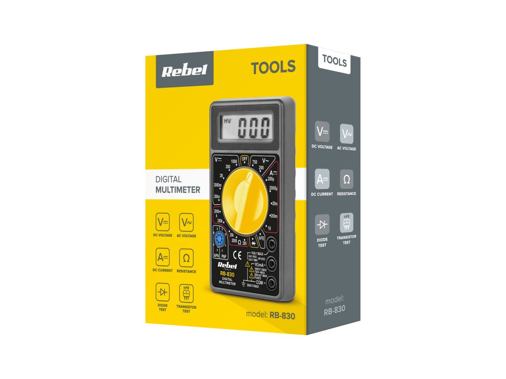 Univerzalni merilnik REBEL RB-830 je vsestransko merilno orodje, ki je idealno za delo z elektroniko in elektriko. Namenjen je tako profesionalcem kot amaterjem, saj zagotavlja natančne meritve in enostavnost uporabe, kar ga naredi za nepogrešljiv element opreme.