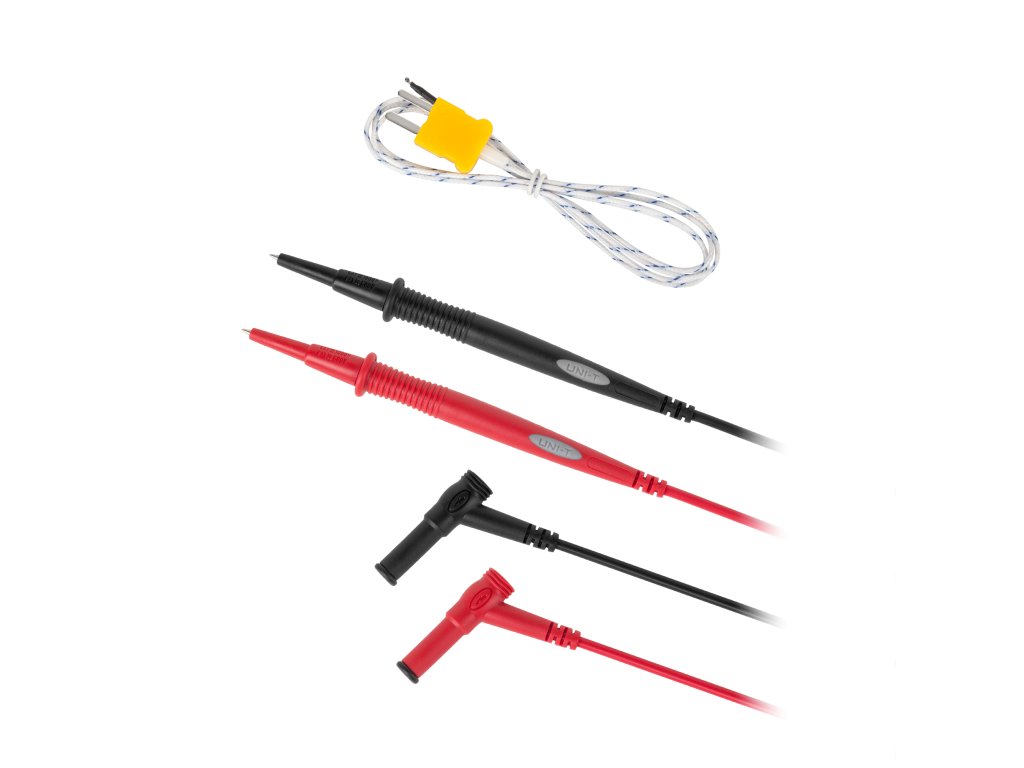 V kompletu z merilnikom Uni-T PRO UT195M so vključeni potrebni dodatki, kot so merilni kabli, sonda za merjenje temperature ter etui, kar omogoča polno izkoriščanje njegovih zmogljivosti takoj po razpakiranju.