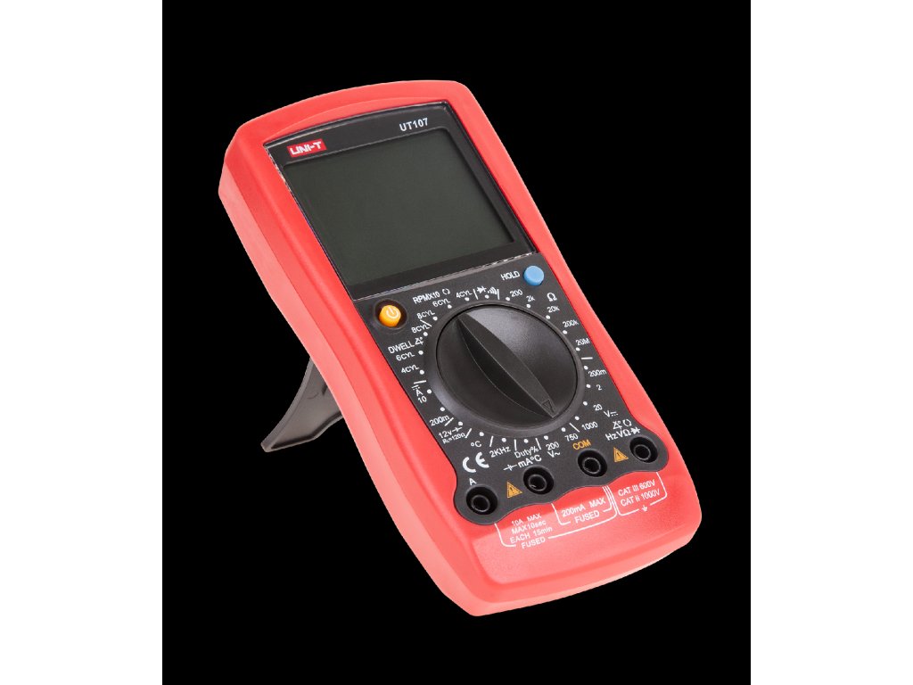 Uni-T UT107 je vsestranski univerzalni merilnik, zasnovan posebej za avtomobilsko diagnostiko, idealen za mehanike, serviserje in avtomobilske navdušence. Zaradi širokih merilnih možnosti in funkcij, prilagojenih za delo s vozili, je UT107 nepogrešljivo orodje za natančne meritve in diagnostiko različnih avtomobilskih sistemov.