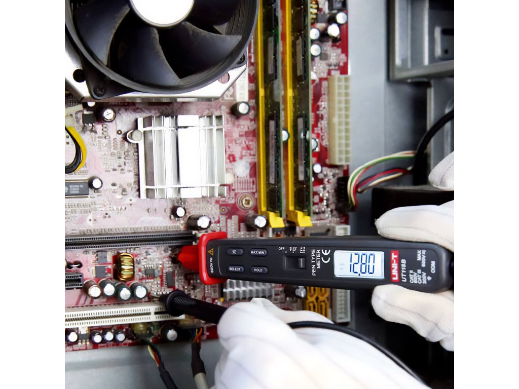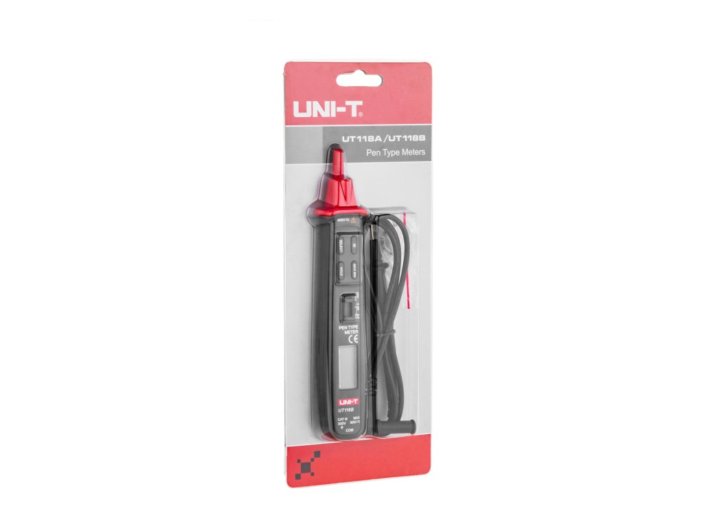 UT118B se ponaša z izjemno kompaktno zasnovo in nizko težo, kar omogoča enostavno prenašanje in je idealno za delo v omejenih prostorih. Naprava meri 20 x 27 x 182 mm in tehta samo 90 g, kar zagotavlja udobje pri uporabi. Osvetljen LCD zaslon dimenzij 28 x 14 mm zagotavlja berljivost odčitkov tudi v slabih svetlobnih pogojih.