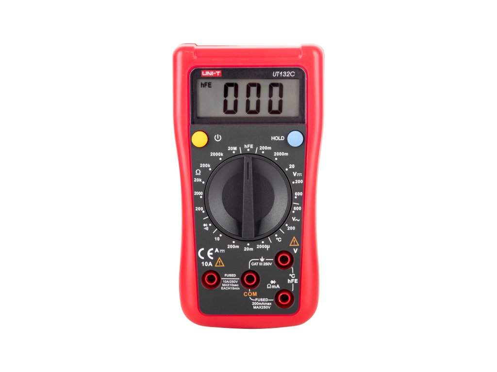 Merilnik Uni-T UT132C je ena izmed univerzalnih merilnih naprav, ki omogoča merjenje osnovnih električnih veličin, kot so enosmerna ali izmenična napetost, enosmerni tok in upornost. Poleg tega model omogoča merjenje temperature, preverjanje neprekinjenosti vezja, preizkus diod in preučitev hFE tranzistorjev.