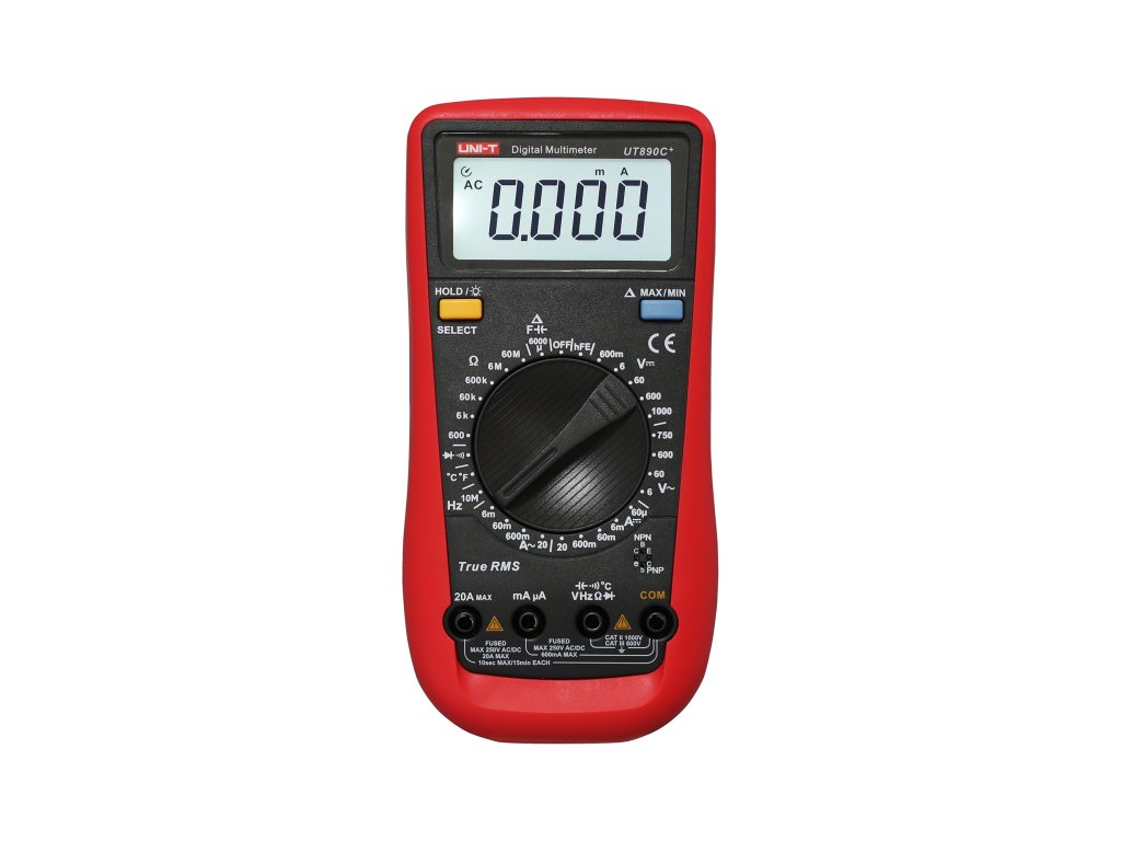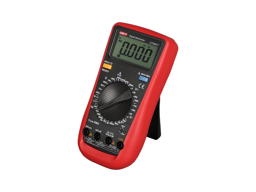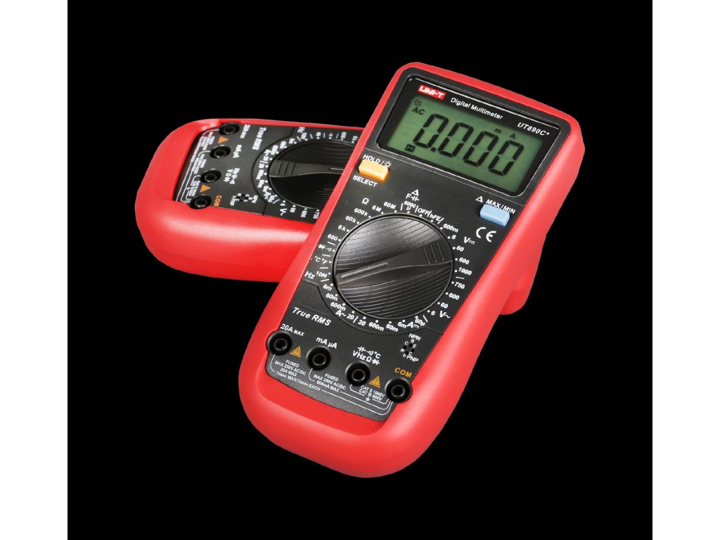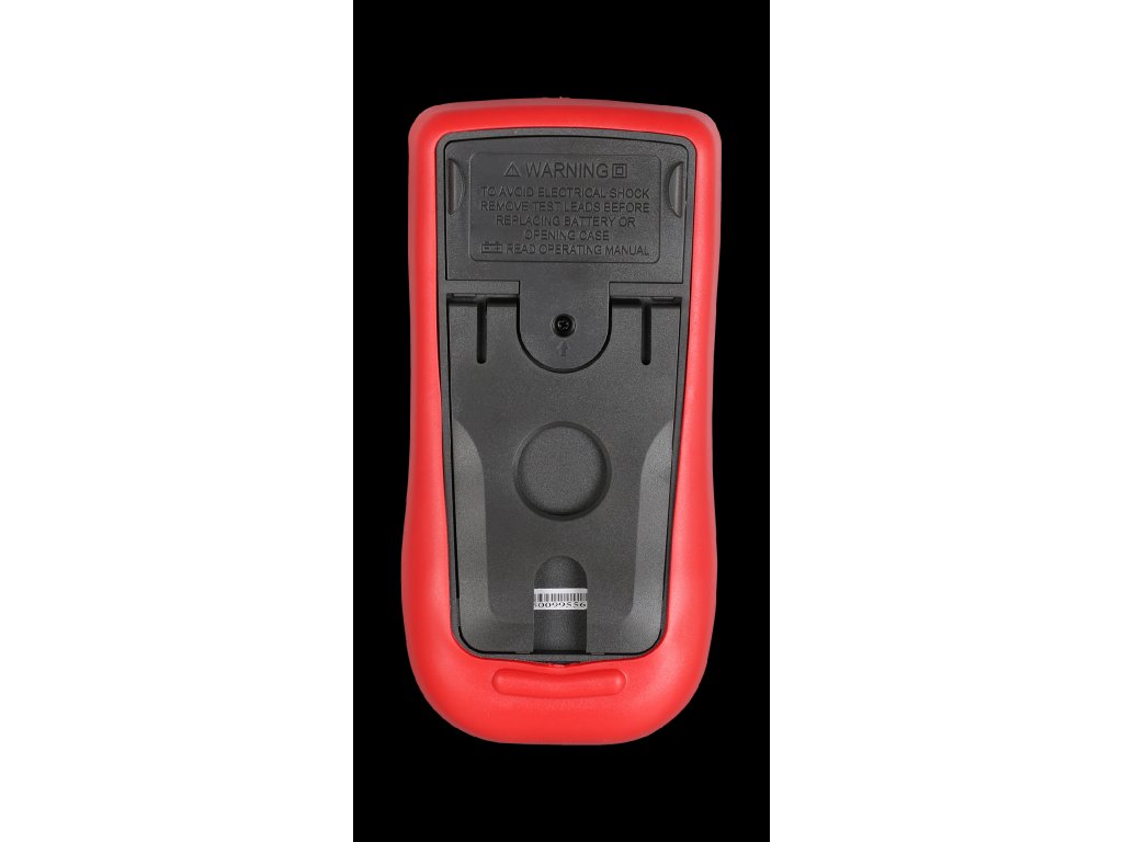 MERILNA OBMOČJA Napetost enosmernega toka DC: 600 mV/ 6 V/ 60 V/ 600 V/ 1000 V ±(0,5%+2) Napetost izmeničnega toka AC : 6 V/ 60 V/ 600 V/ 750 V ±(0,8%+3) Jakost enosmernega toka DC: 60 µ/ 6 mA/ 60 mA/ 600 mA/ 20 A ±(0,8%+8) Jakost izmeničnega toka AC: 6 mA/ 60 mA/ 600 mA/ 20 A ±(1%+12) Upornost: 600 Ohm/ 6 kOhm / 60 kOhm/ 600 kOhm/ 60 MOhm/ 60 MOhm ±(0,8%+3) Kapacitivnost: 9,999 nF/ 99,99 nF ~ 999,9 µF/ 9,999 mF/ 99,99 mF ±(2,5%+20) Frekvenca: 9,999 Hz ~ 10,00 MHz ±(0,1%+5) Temperatura: -40°C ~ 1000°C (1,0%+3) / -40°F ~ 1832°F (1,5%+5) Test diod Preverjanje kontinuitete Preverjanje tranzistorjev DODATNE FUNKCIJE Ročna sprememba merilnih področij True RMS Shranjevanje vrednosti MAX/MIN Shranjevanje relativne vrednosti Zamrznitev zadnjega prikaza Samodejni izklop Indikator nizke ravni baterije Največji prikaz: 5999 SPLOŠNE LASTNOSTI Napajanje: Baterija 9 V (6F22) LCD zaslon: 63 x 29 mm Neto teža: 309 g Dimenzije: 185 x 88 x 40 mm Dodatki: baterija, merilni kabli, tipalo za merjenje temperatureMERILNA OBMOČJA