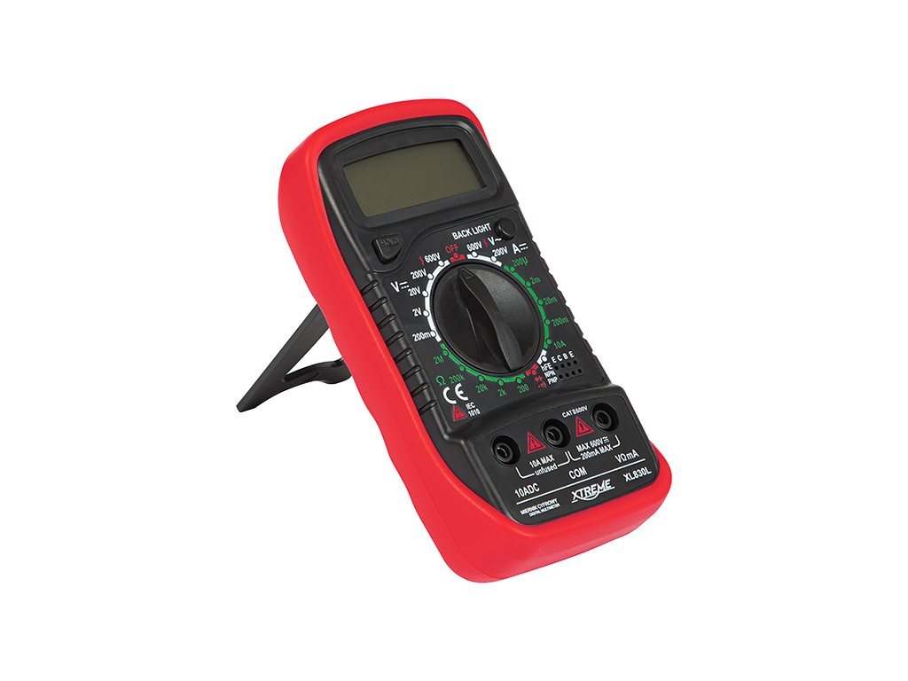 Merilnik XTREME je univerzalno orodje, namenjeno delavnicam ali šolam, vendar bo odlično deloval tudi pri domačih in profesionalnih nalogah. Odlikuje ga zelo čitljiv osvetljen LCD zaslon ter zaščitni in snemljiv gumijasti pokrov, zadaj pa je vgrajeno stojalo, ki olajša odčitavanje rezultatov med meritvami. V kompletu so priloženi tudi potrebni kabli.