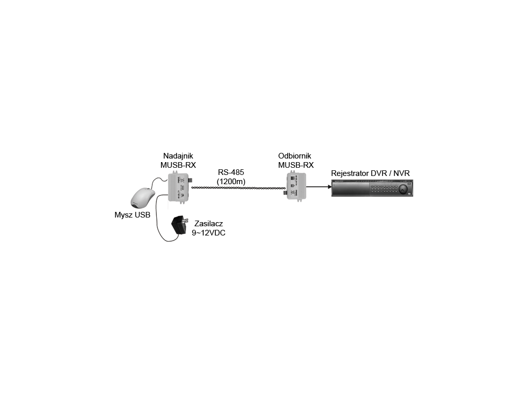 V paketu je oddajnik, na katerega je priključena USB miška ter sprejemnik, opremljen z izhodom USB-B. MUSB-1/1 odlično rešuje težave pri upravljanju digitalnih rekorderv na večjih razdaljah, ob upoštevanju vseh podrobnosti pomembnih za uporabnika.