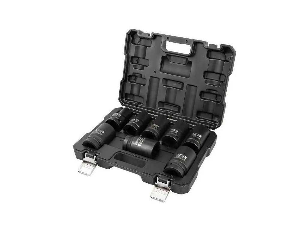 Komplet 8 globokih udarnih nasadkov JCB Tools je profesionalno orodje namenjeno intenzivnim delovnim nalogam, vključno z montažo in demontažo vijakov in matic s pomočjo udarnih ključev.