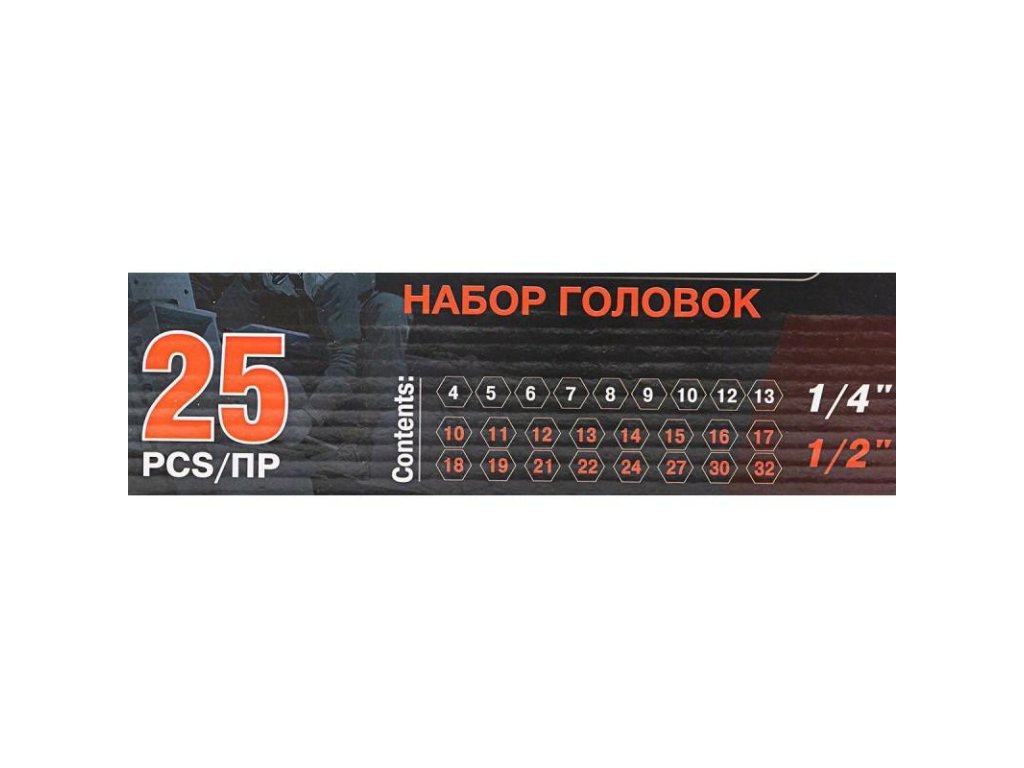 Nabor nastavkov 1/4" in 1/2" 25 kosov (4-32mm) (6-hedričnih)