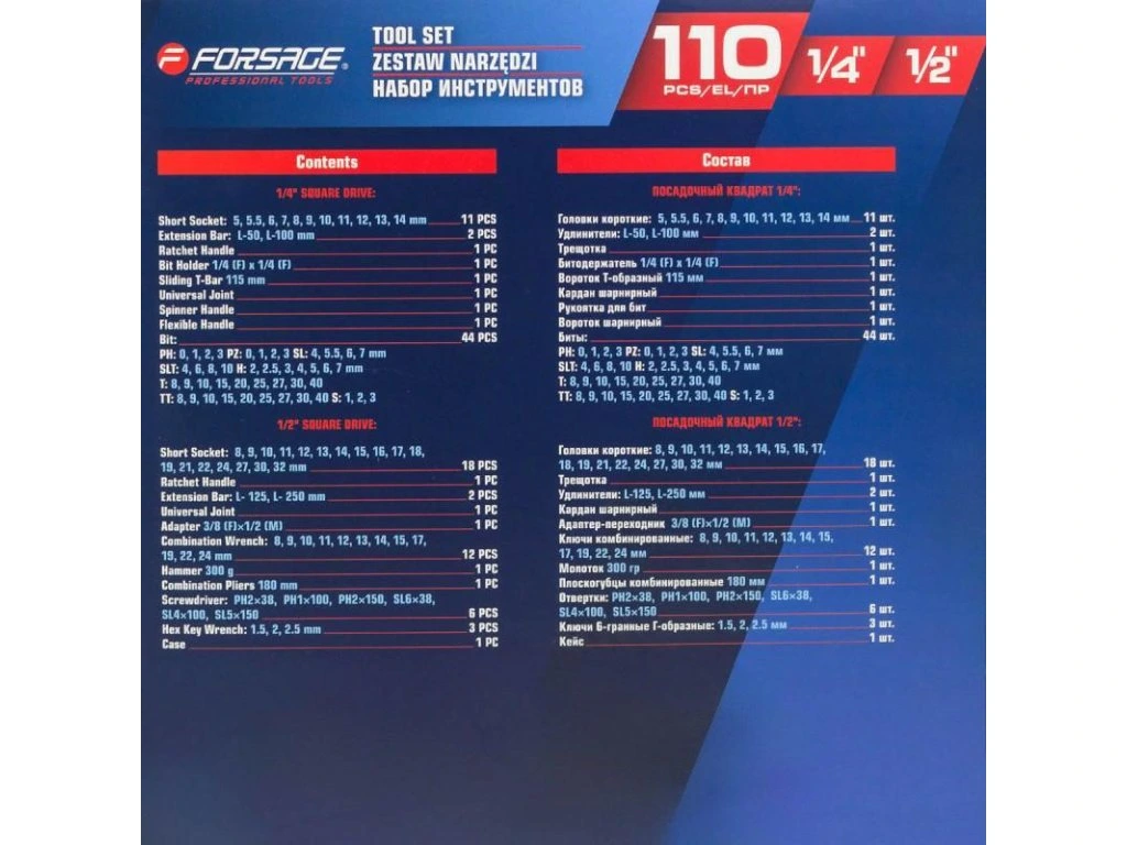 Nabor orodja 110 kosov 1/4" in 1/2"