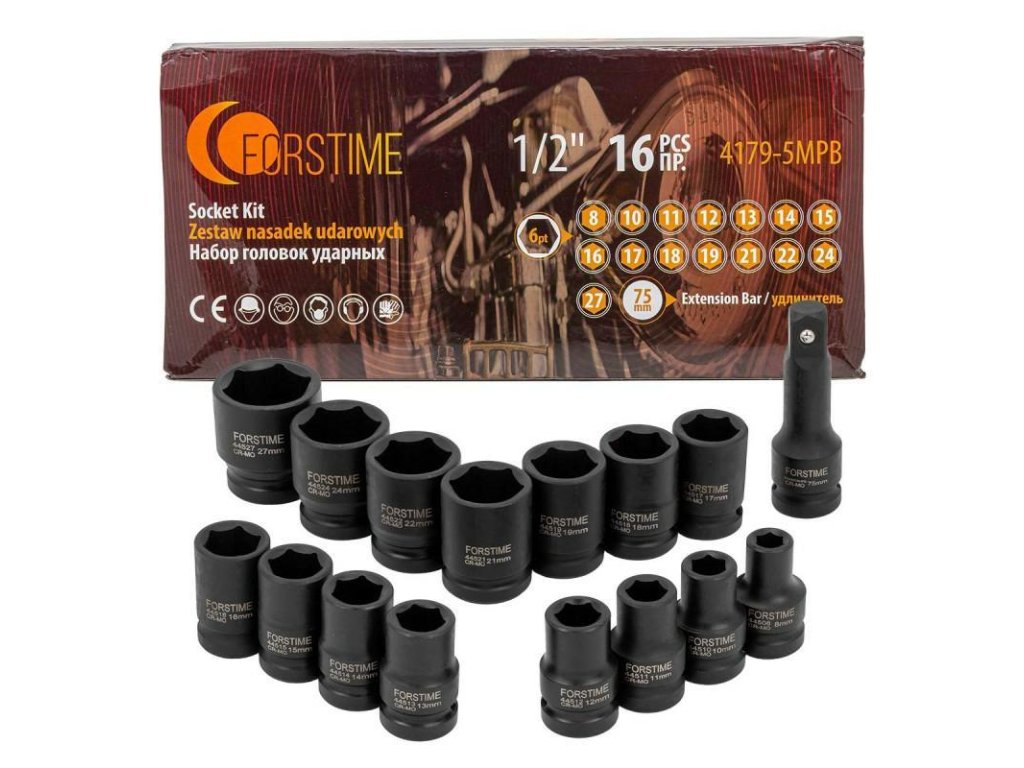 Nabor udarnih nastavkov 1/2" 8-27mm 6-kraki