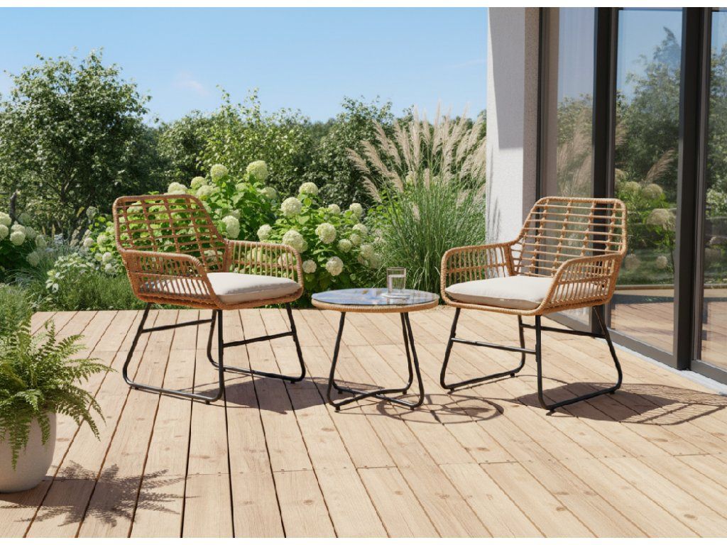 Eleganten in praktičen nabor zunanjega pohištva, ki se odlično prilega vsakemu zunanjemu prostoru – na teraso, v vrt ali na balkon. Izdelano iz visokokakovostnih materialov, zagotavlja trajnost, udobje in odpornost na vremenske razmere. Stilni rattan v kombinaciji s udobnimi blazinami ustvarja idealen prostor za počitek.