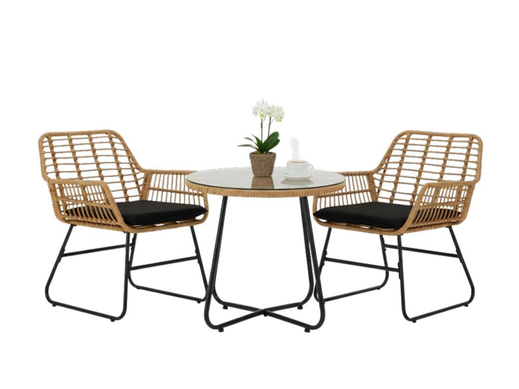 Eleganten in praktičen komplet vrtnega pohištva, ki se popolnoma prilega vsakemu zunanjemu prostoru – na teraso, v vrt ali na balkon. Izdelan iz visokokakovostnih materialov, zagotavlja trajnost, udobje in odpornost proti vremenskim vplivom. Sloganten ratan v kombinaciji z udobnimi blazinami ustvarja popoln prostor za počitek.