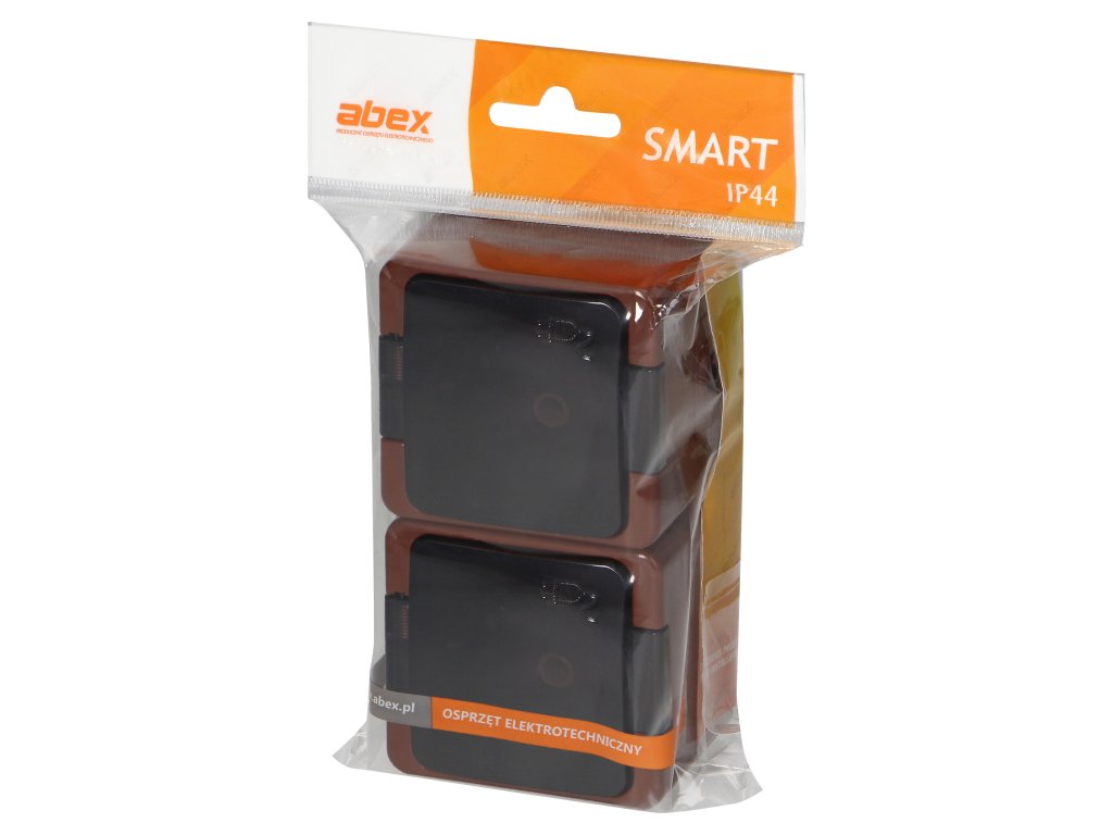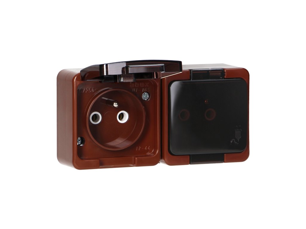 Nadometna dvojna vtičnica 2x2P+E, odporna proti pljuskom z zaščitnim pokrovom, IP44, SMART, rjavaAdditional parameters