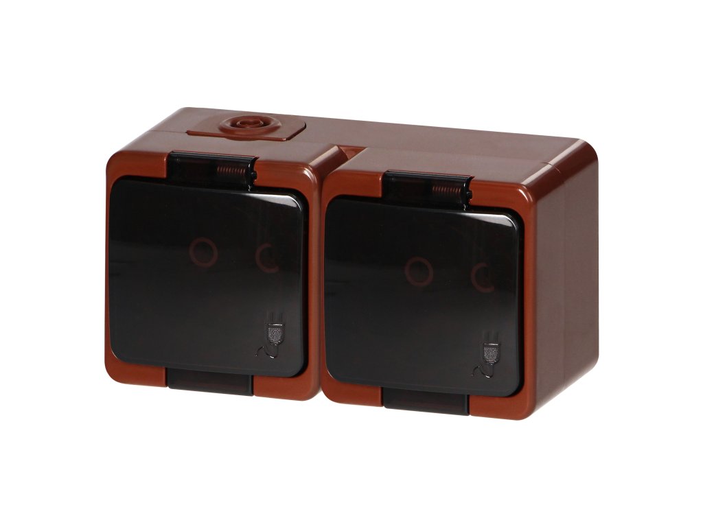 Nadometna dvojna vtičnica 2x2P+E, odporna proti brizganju z zaščito, IP44, PAMETNA, rjava
