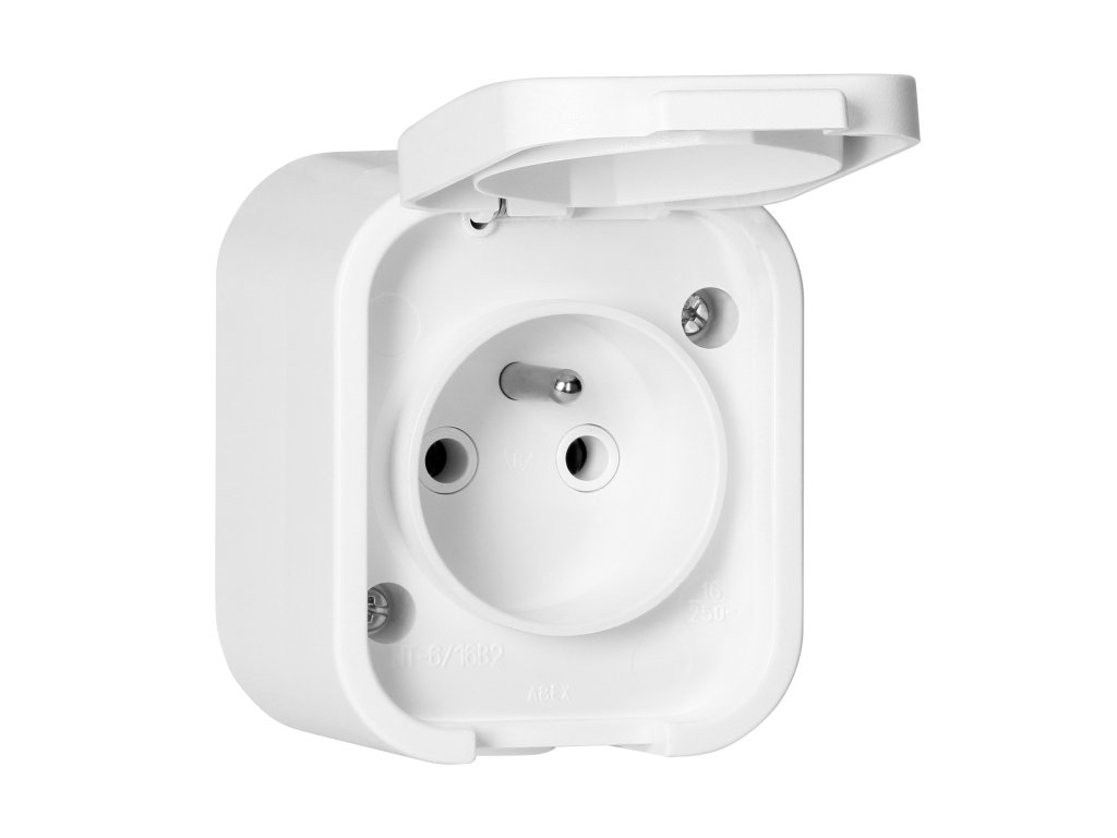 Nadometna enojna vtičnica 2P+E, vodoodporna s pokrovom B2, IP54, NT-16B2, bela