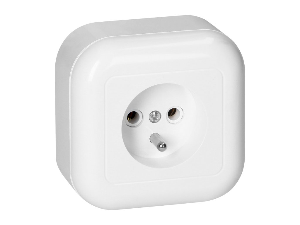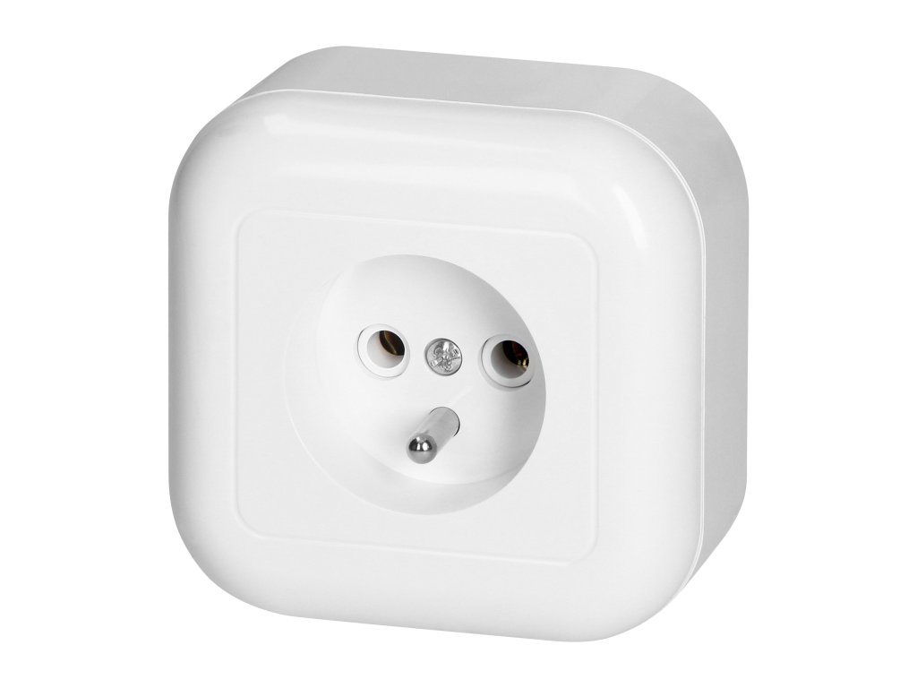 Nadzemna enoja vtičnica 2P+E, 16A, 250V, bela