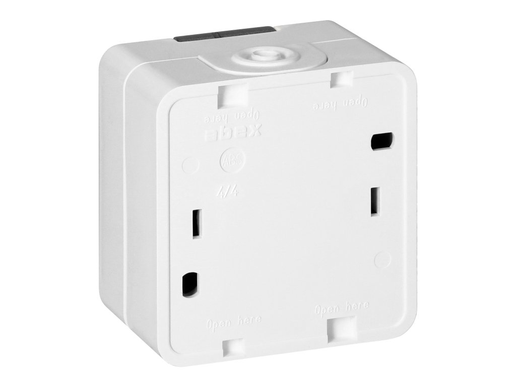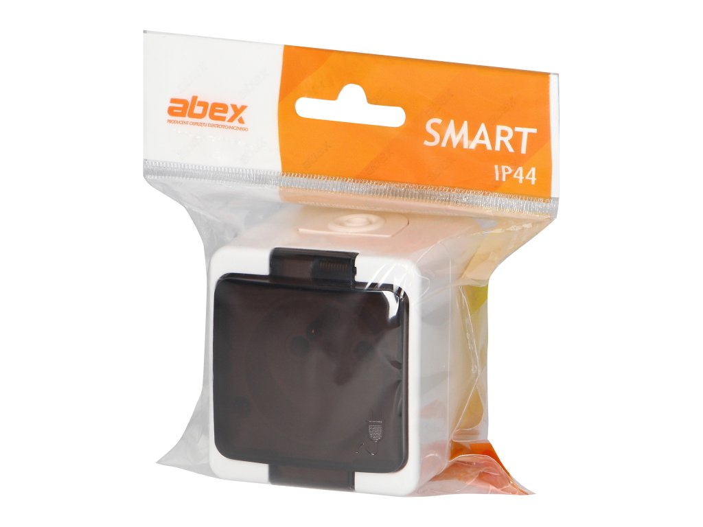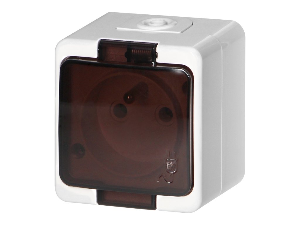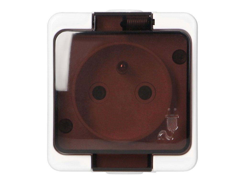 Nadzidna enojna vtičnica 2P+E, odporna proti škropljenju s pokrovom iz zatemnjenega stekla, IP44, SMART, bela