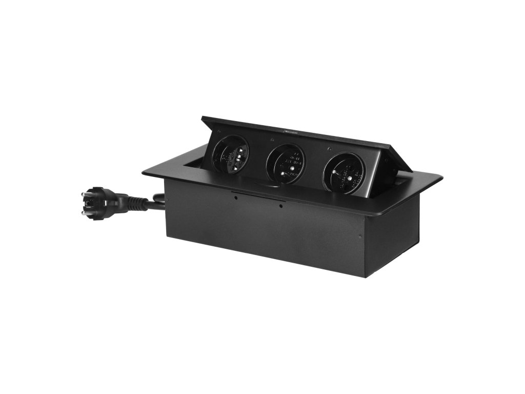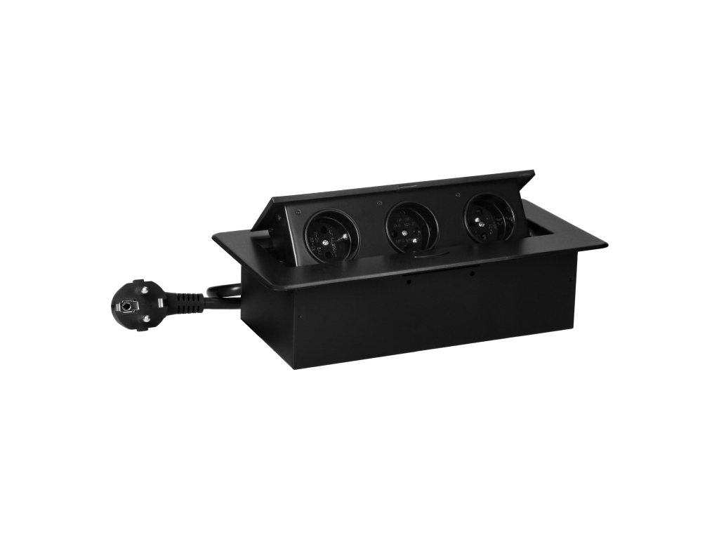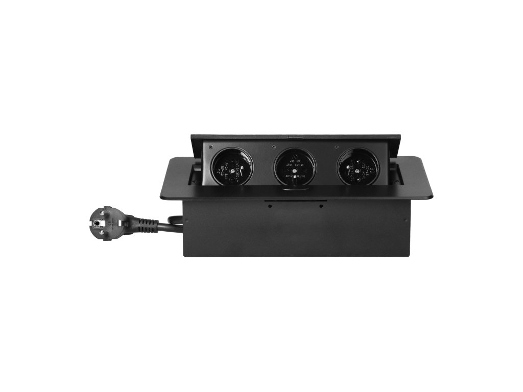 Zapiralna, vgrajena pohištvena vtičnica omogoča priklop treh naprav hkrati, saj je opremljena s tremi ozemljenimi francoskimi vtičnicami (3x2P+E).