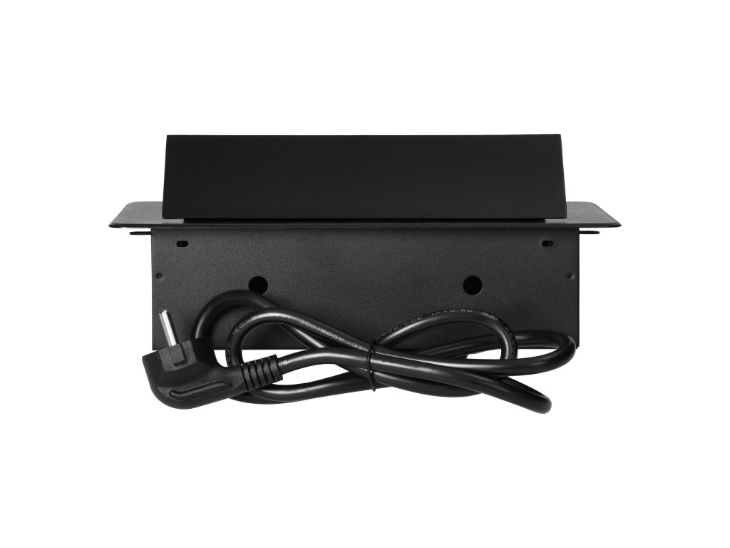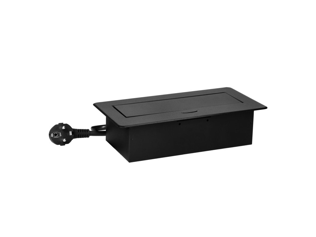 Črna, prašno lakirana vtičnica se odlično prilega površinski obdelavi večine pohištva in se lepo vključuje v večino interierjev. Eleganten dizajn naredi vgrajeno pohištveno vtičnico v stilsko alternativo običajnim podaljškom ali napajalni letvi ter učinkovito odpravlja težavo z zavozlanimi kabli.
