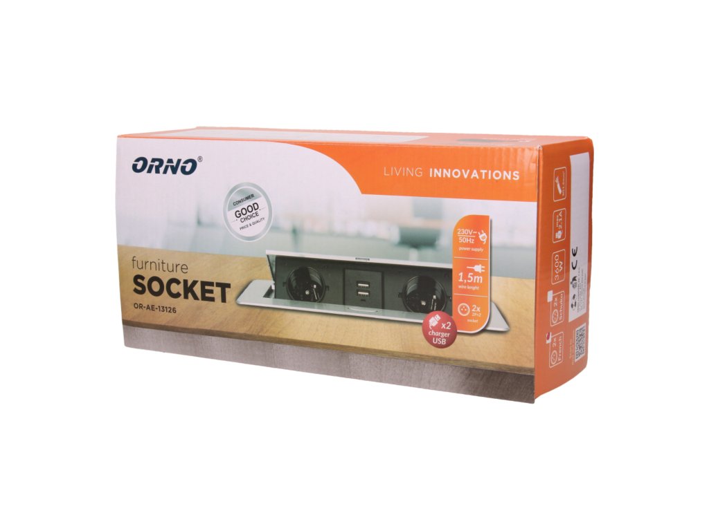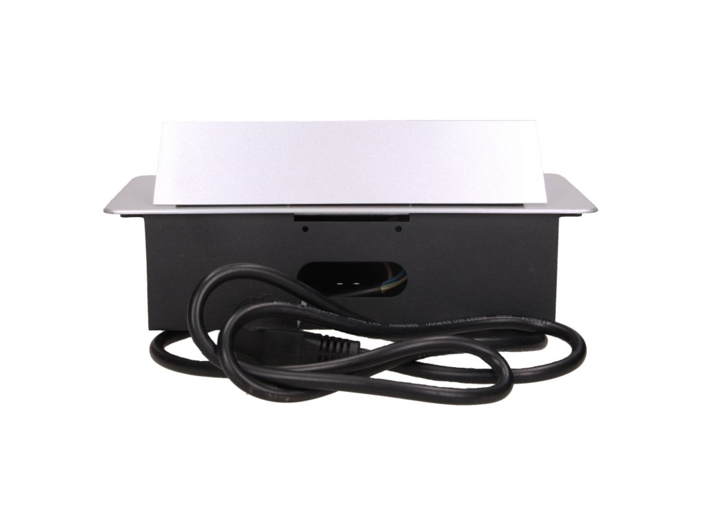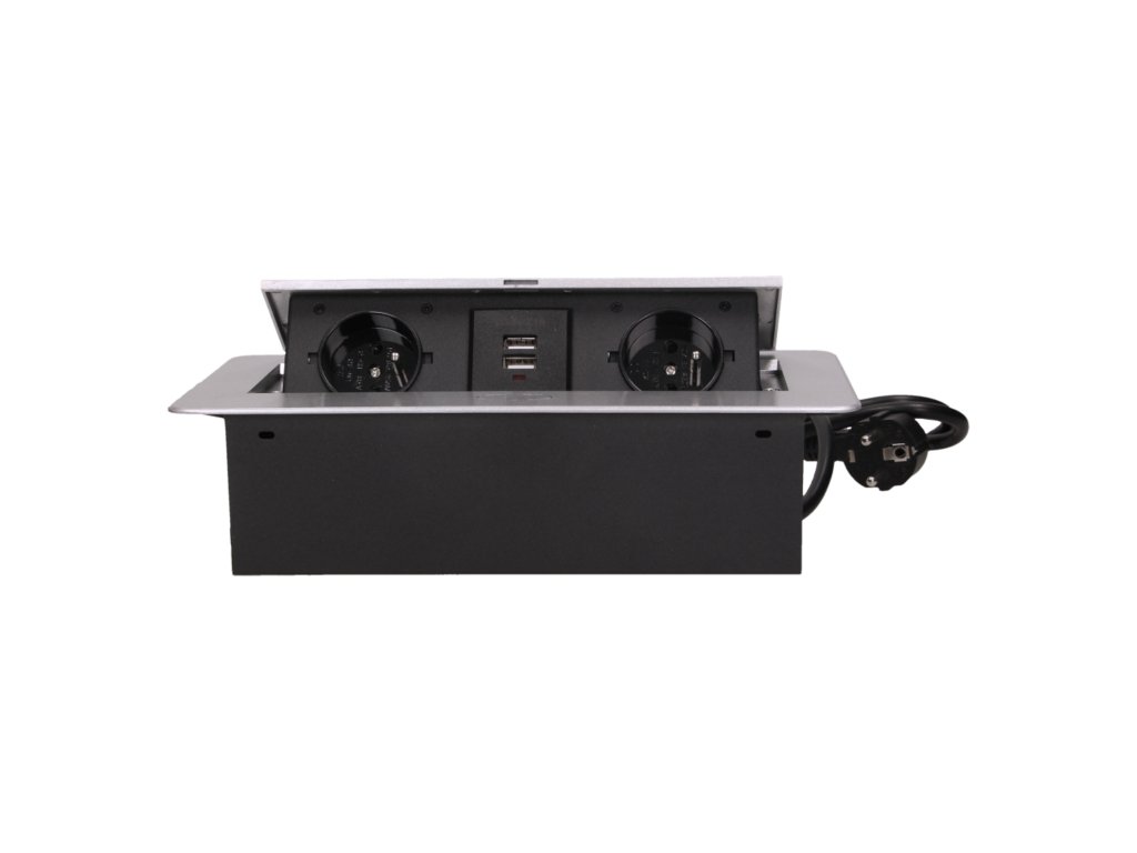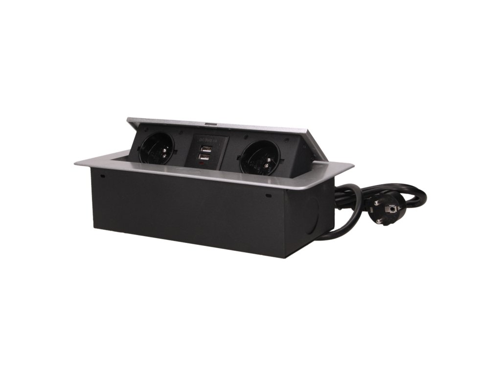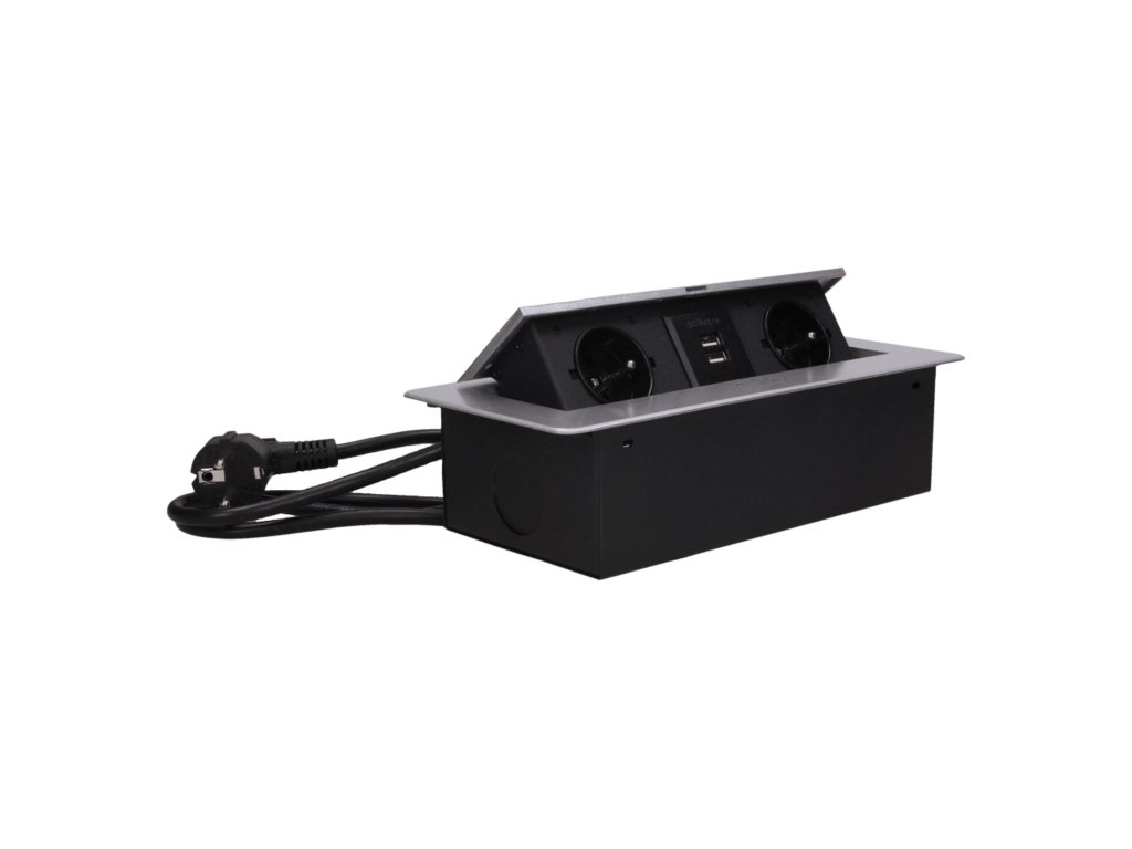 Komplet dveh omrežnih vtičnic z ozemljitvijo in membranami tokokroga, povezanih z USB polnilcem v izvlečnem zgornjem pokrovu. Namenjen za notranjo vgradnjo v mize, pulti in mizice v navpični ali vodoravni legi, pri čemer omogoča dostop do električnih vtičnic.Tehnične Specifikacije