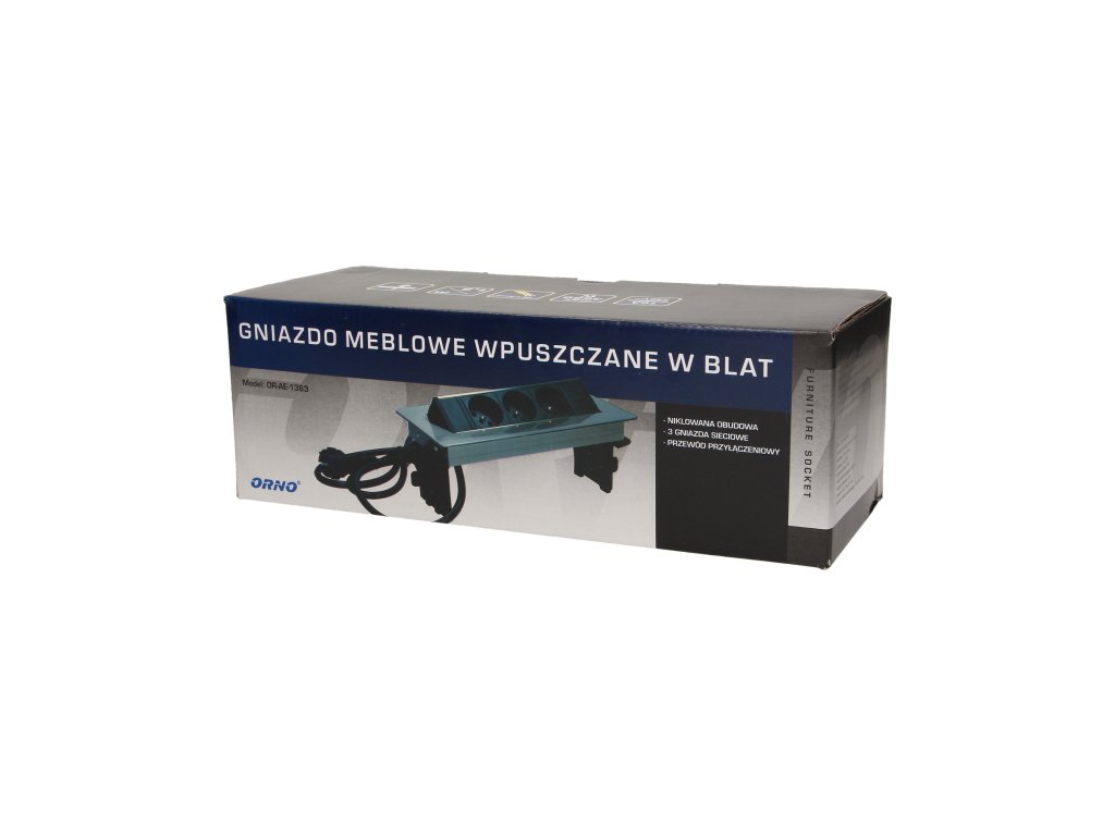 Set treh napajalnih vtičnic 2P+Z v ponikljani ohišju, z izvlečnim zgornjim delom. Naprava je namenjena za vgradnjo v delovne mize, pulti in mize.