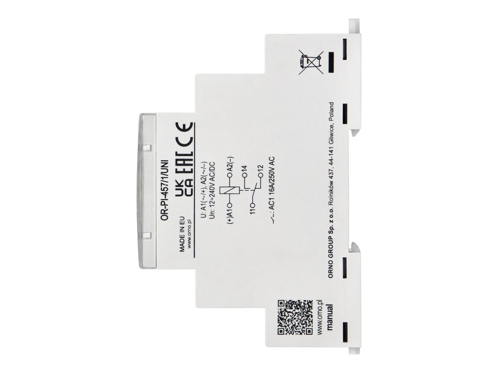 Število in tip kontaktov:1PTemperatura skladiščenja:od -40°C do +70°CMaterial kontaktov:AgSnO2Nazivna obremenitev AC1:16 A / 250 V ACStopnja zaščite (IP):20Nazivna obremenitev DC1:16 A / 24 V DCMaksimalna preklopna zmogljivost v kategoriji AC1:4000 VAKontaktni upor:? 100 m?Maksimalna frekvenca preklapljanja:600 ciklov/uroNazivna napetost:12 do 240 VObseg delovne napetosti:0,85 - 1,1 unMere - globina:90 mmKategorija prenapetosti:IIINorma gorljivosti ohišja UL94:V0Življenjska doba preklapljanja AC1:> 0,5 x 10^5Mere - višina:64,60 mmDelovna temperatura:-20?~+50?Relativna vlažnost:do 85%odpornost na udarce:15 godpornost na vibracije:9 g / 5 gČista teža:60 gDodatni parametri