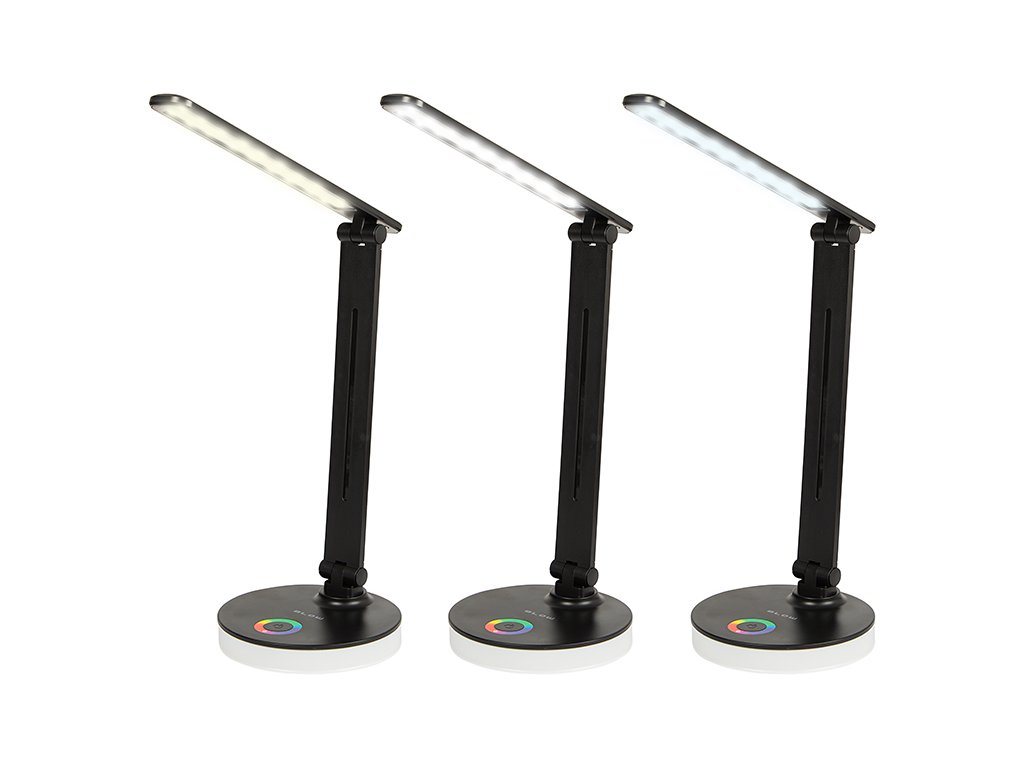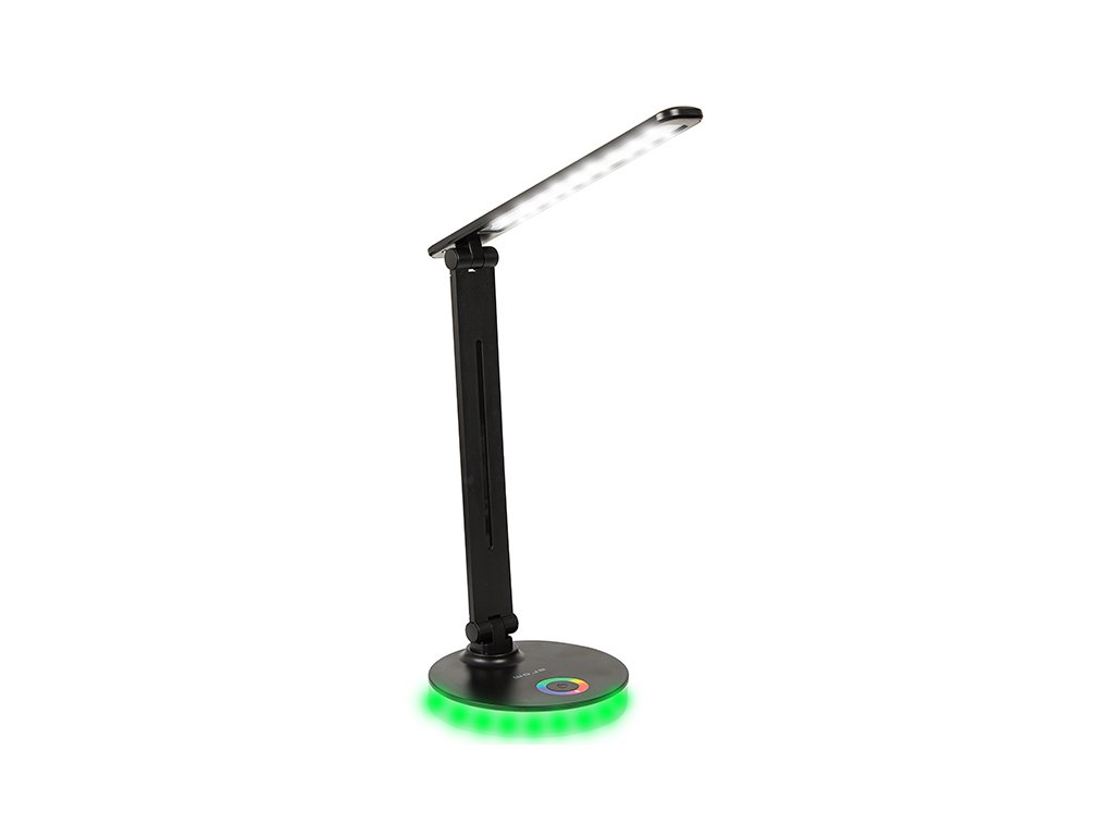 Sodobna LED namizna svetilka z vgrajeno RGB osvetlitvijo v podstavku. To idealne združenje namizne svetilke in nočne svetilke olajša sprostitev, podpira naravni proces spanja in regeneracije telesa. Omogoča lažje uspavanje in prebujanje.