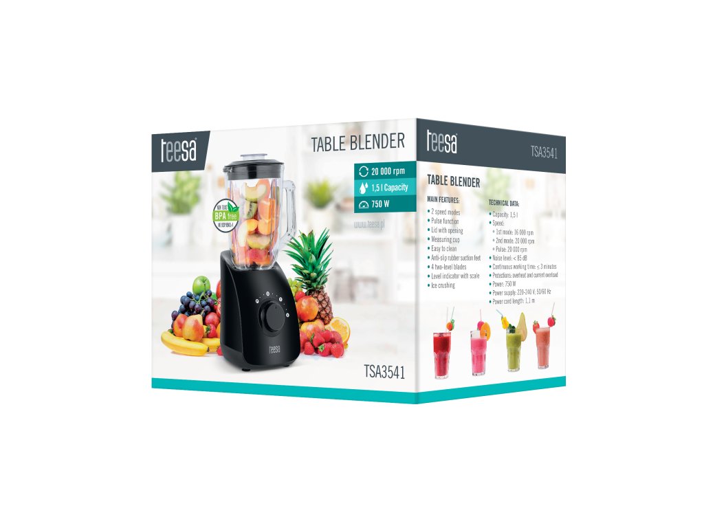 Če je za vas varnost in varnost vaših bližnjih najpomembnejša, je mešalnik Teesa prava izbira. Naprava ne vsebuje BPA - to pomeni, da je izdelana brez materialov, ki vsebujejo bisfenol, kar je še posebej pomembno za zdravstvene učinke pripravljenih koktajlov.----------