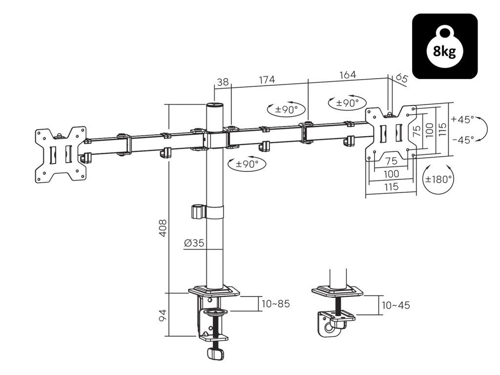 Namizno stojalo za dva monitorja 13"-27" BLOW