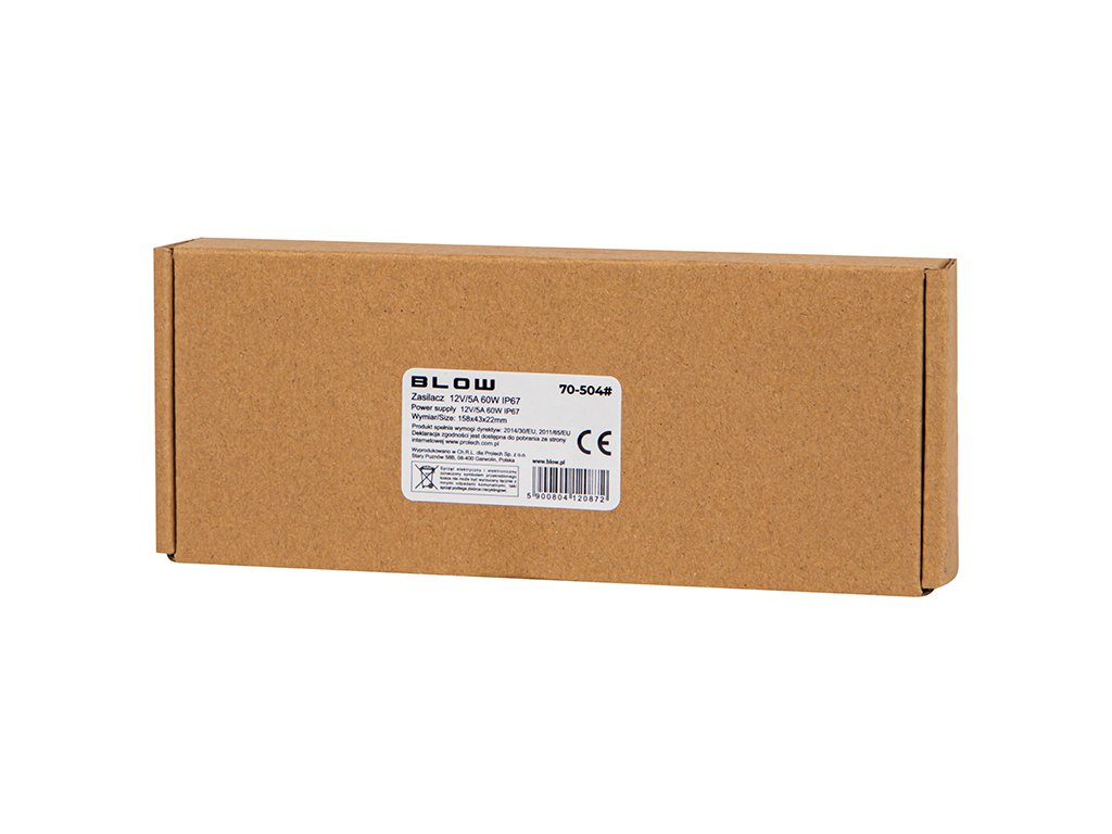 Napajalnik je namenjen LED instalacijam. Ima razred odpornosti na vodo IP67, zaradi česar je idealen za mesta, kjer je naprava izpostavljena vodi in prahu. Odlično se poda za uporabo v kopalnicah, kuhinjah, na terasah, v paviljonih, na reklamnih panojih in na mnogih drugih mestih. Poleg tega so napajalniki BLOW opremljeni z zaščito pred kratkim stikom, preobremenitvijo in toplotno zaščito.