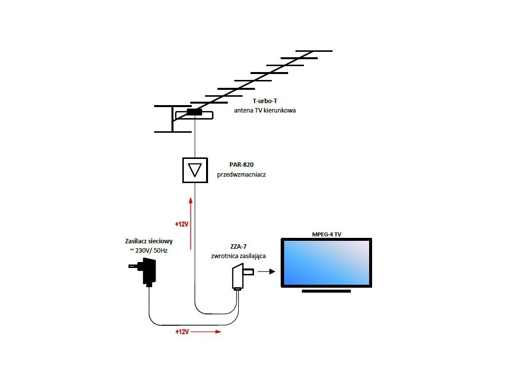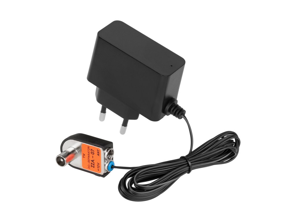 Tehnični podatki: - Frekvenčno območje: (FM/ VHF, UHF) 47,5-862 MHz - Prehodna dušljivost: <1,0 dB - Izolacja (tor RF / tor zasilania): >20 dB - Vhodna/izhodna impedanca: 75 / 75 Ohm - Napajanje: ~230 V / 50 Hz - Izhodna napetost napajalnika: +12 V - Največji obremenitveni tok napajalnika: 100 mA - Napajalnik z integriranim izklopnikom: da - Neto teža: 0,1 kg z napajalnikom - Embalaža: pretisni omot