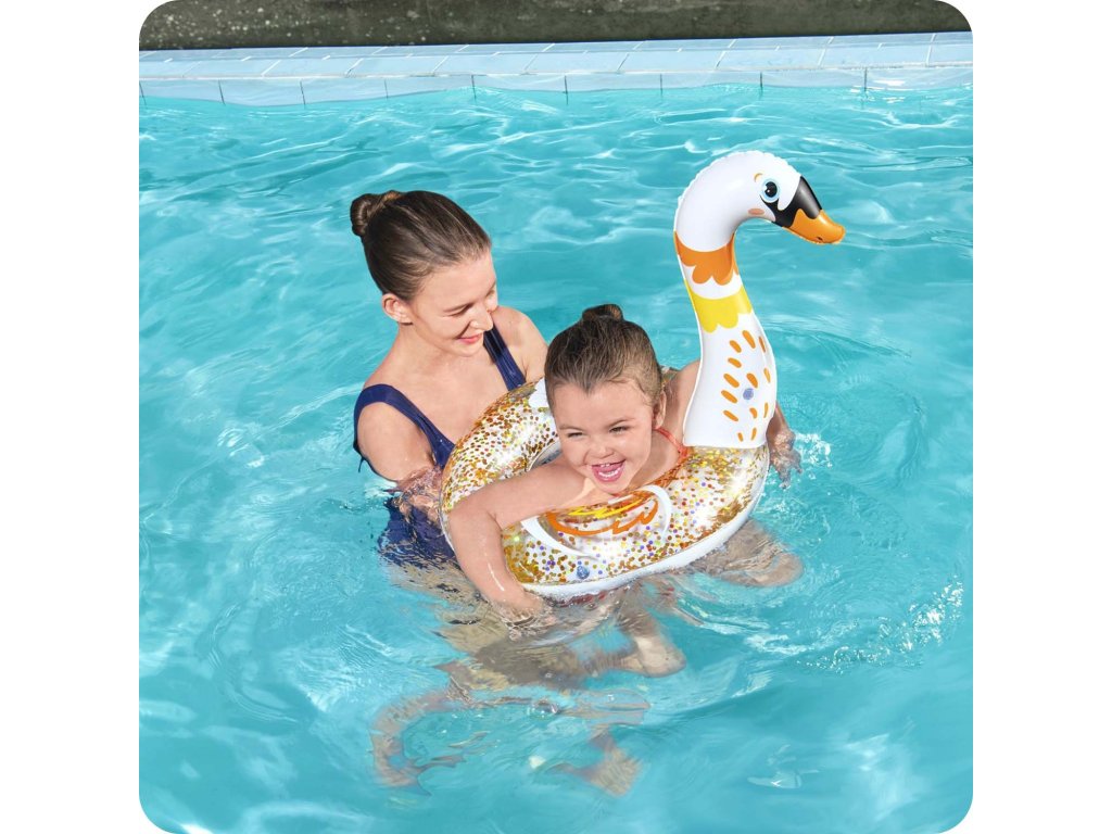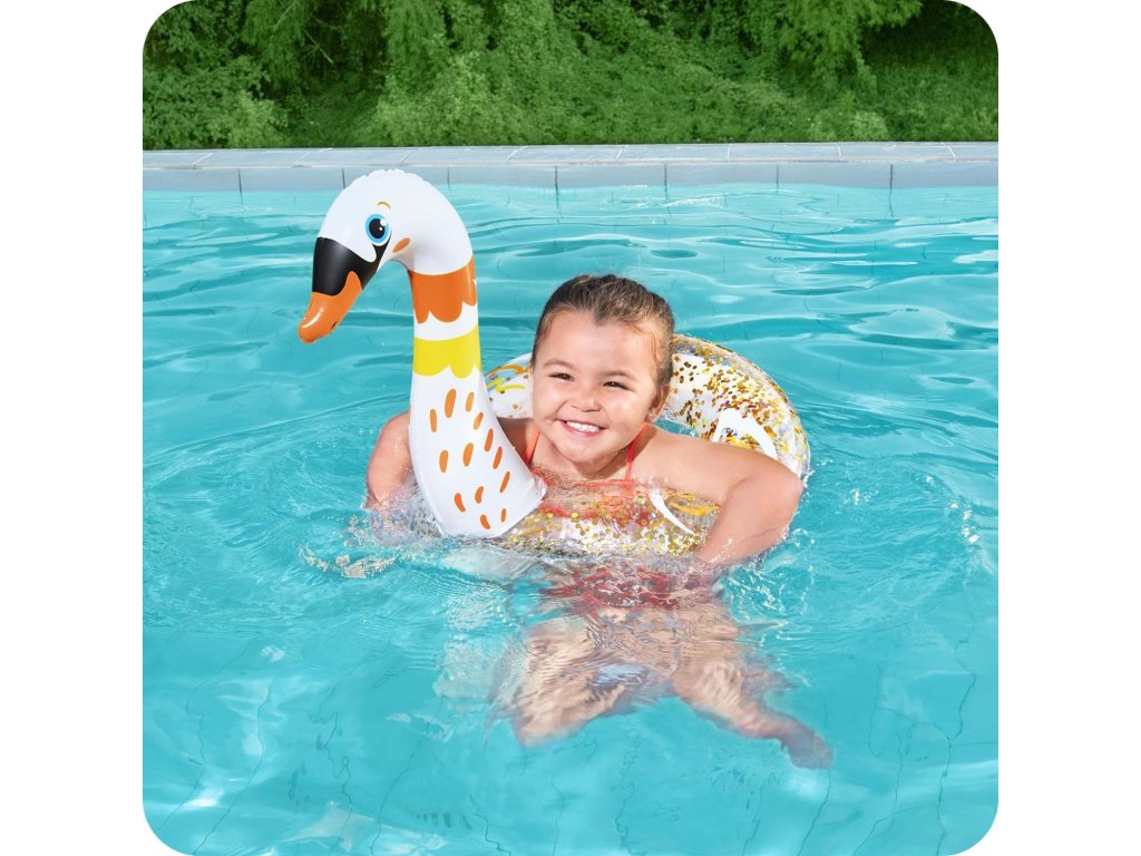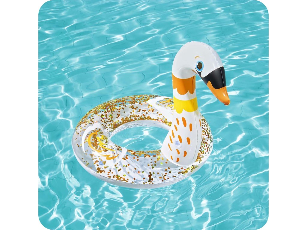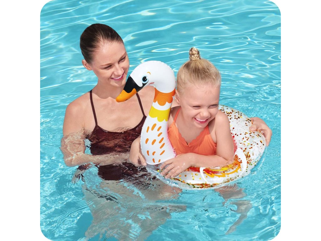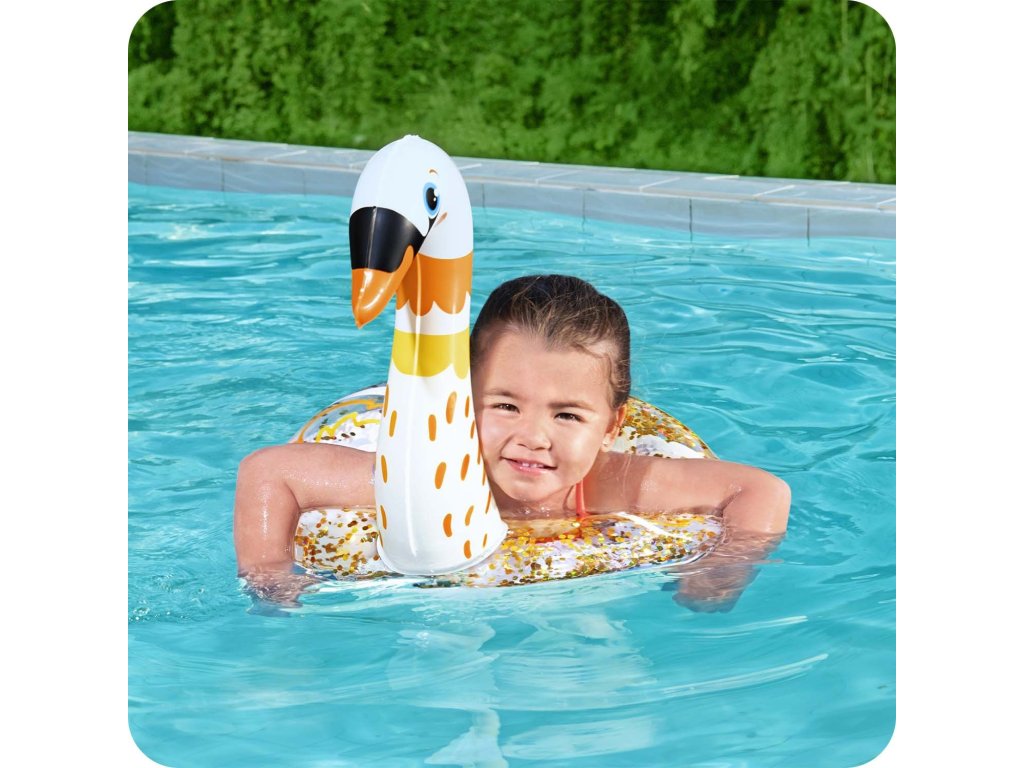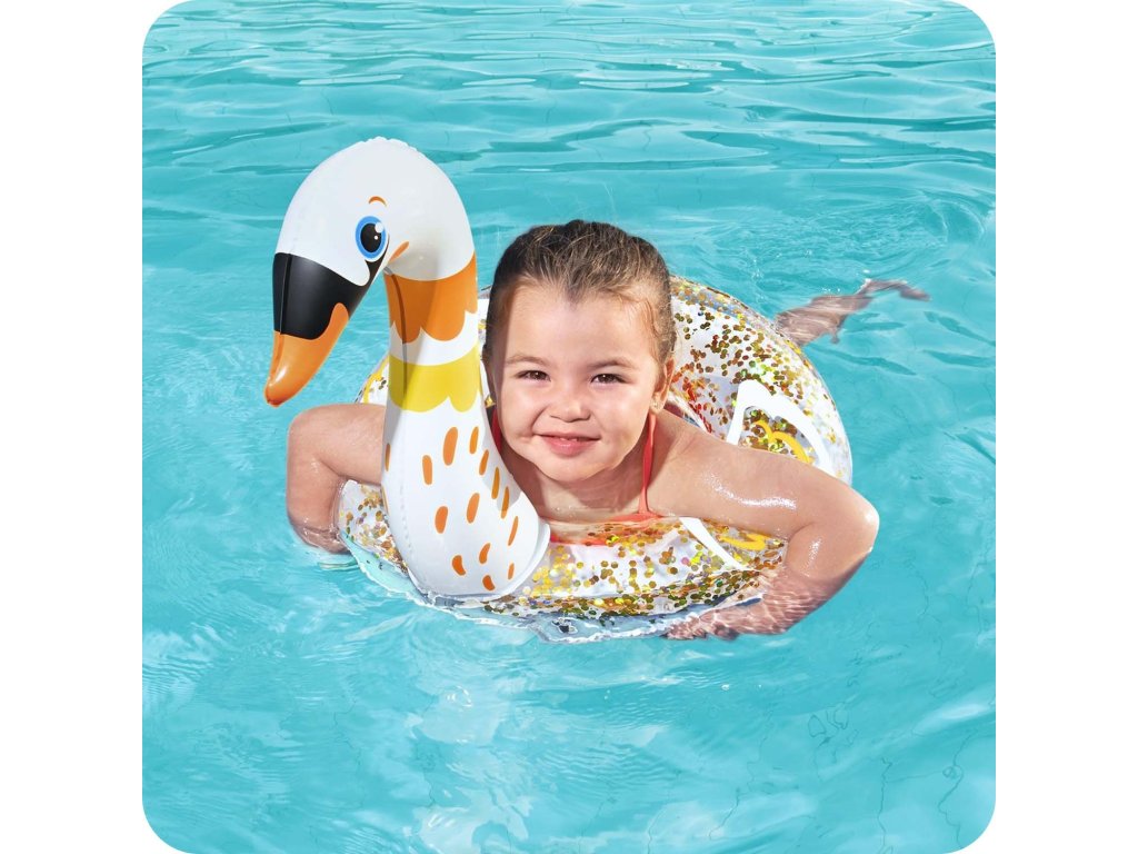 Obroč za otroke Bestway 36306 HIT Obroč v čudoviti obliki Izdelan iz močnega PVC, odpornega na delovanje slane vode in sonca. S svojo obliko spominja na čudovitega laboda, ki bo zagotovo spodbudil otroke k igri v vodi. Z nakupom dodatkov BESTWAY ste prepričani, da boste prejeli najvišjo kakovost izdelka. Vodna dogodivščina! Učenje plavanja se lahko spremeni v fascinantno dogodivščino zahvaljujoč plavalnemu obroču Bestway, ki s svojo obliko spodbuja otroka k igri. Glavne značilnosti: vzorec čudovitega laboda ali plamenca vzdržljiv material dve zračni komori obroč napolnjen z bleščicami, ki se svetijo na soncu. Tehnične podrobnosti: Dimenzije: Labod 61 x 58,5 cm Plamenec 61 x 61 cm Teža: 0,15 kg Priporočena starost: od 3 do 6 letAdditional parameters