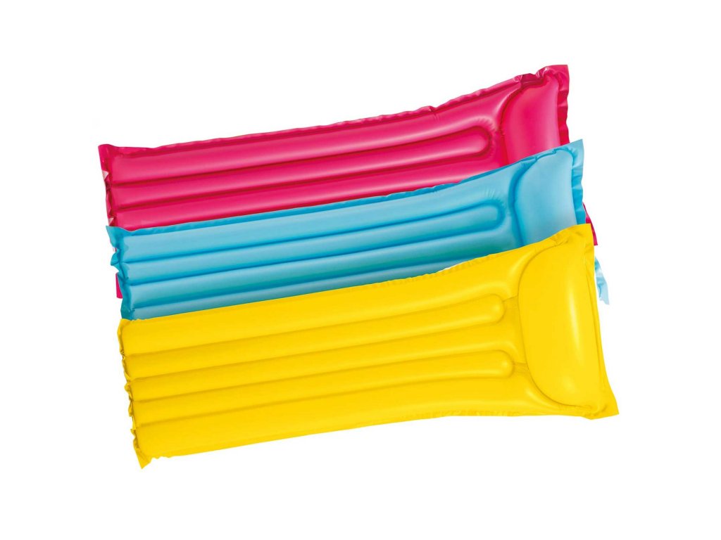 Ležalnik za plavanje 183 x 69 cm INTEX 59703 Zagotovite si maksimalno sprostitev! Udoben - odlično oblikovan ležalnik z udobnim vzglavnikom, ki se zahvaljujoč trdni konstrukciji ne pogrezne in dolgo časa ohranja elastičnost. Trpežen - izdelan iz močnega PVC materiala, odporen proti majhnim poškodbam Stabilen - zahvaljujoč i-beam tehnologiji, torej ogrodju, izdelanem iz vzdolžnih zračnih komor, se boste počutili stabilno in varno, brez skrbi za izgubo zraka v ležalniku! Praktičen - hitro ga napihnete in po potrebi izpihnete iz njega zrak! Ko je zložen, zavzame malo prostora, zato ga lahko vzamete s seboj na morje, jezero ali uporabite v vašem bazenu! Tehnične specifikacije: Dimenzije: 183 x 69 cm Material: PVC Maks. obremenitev: 100 kgAdditional parameters