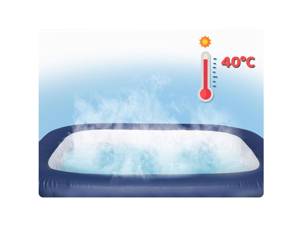 zagotavlja stabilno in odporno na zunanje pogoje konstrukcijo.Rezervoar se ponaša z debelimi, napihljivimi stenami. Med uporabo SPA bodo udobna opora za vas in vaše najbližje.