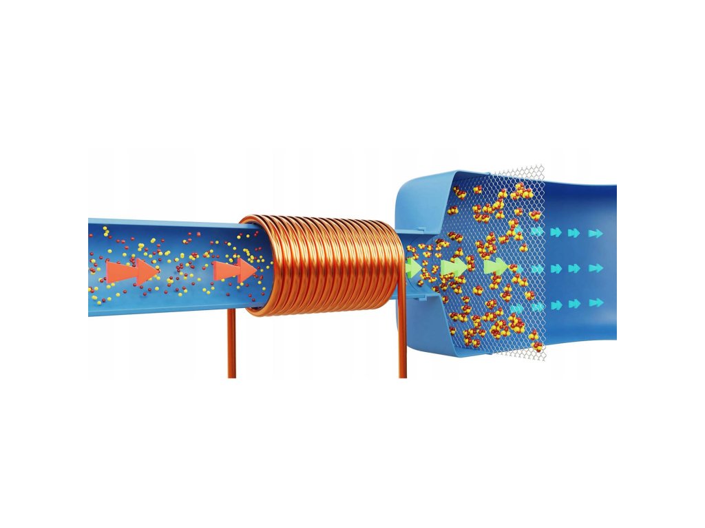 Sistem generira elektromagnetno polje, ki stimulira kalcij in druge minerale v vodi, kar povzroči nastanek kristalov.