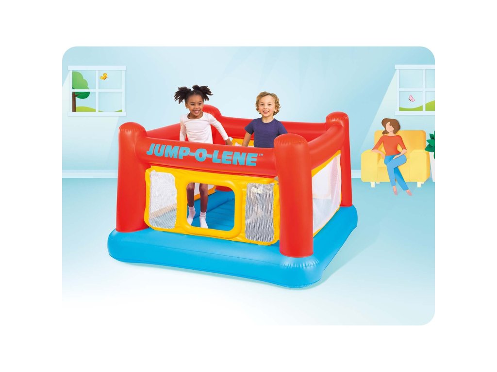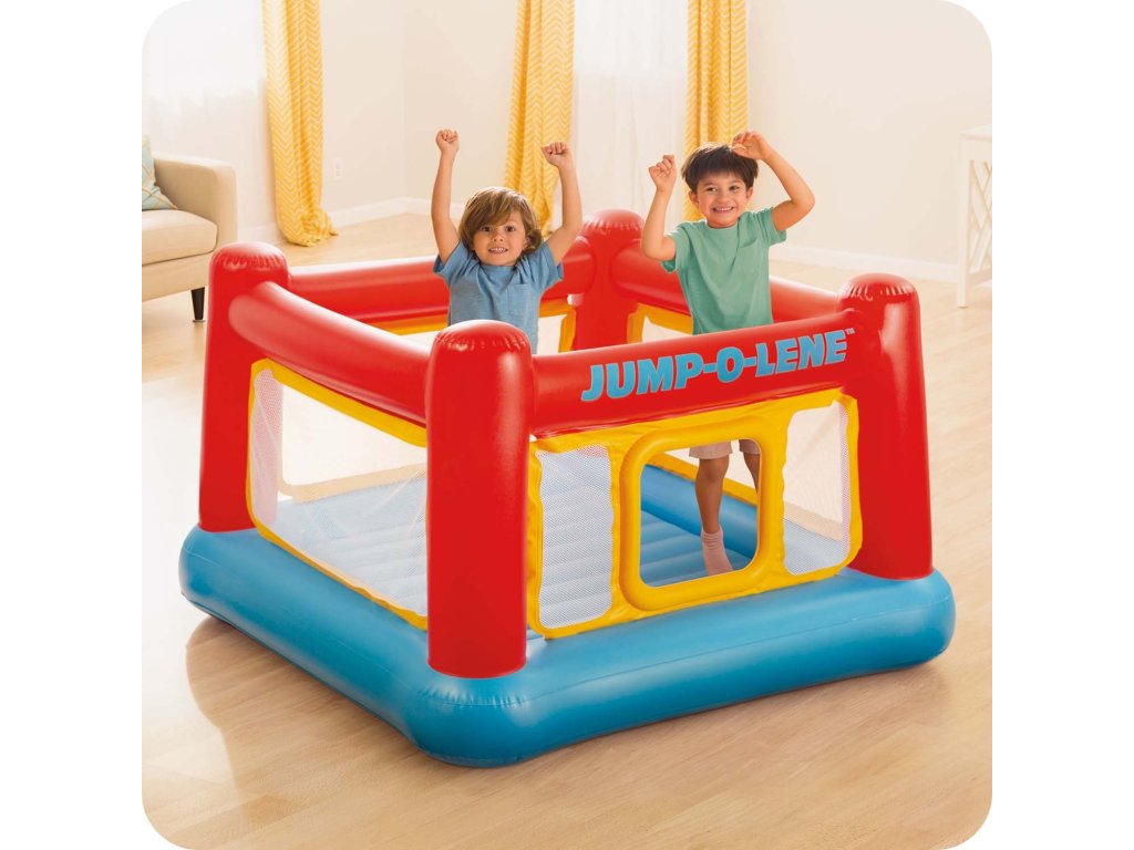 Napihljiv trampolin Intex je čudovita zabava. Lasten mini vrtni komplet z dimenzijami 174 x 174 x 122 cm, po vzoru priljubljenega napihljivega skakalnega gradu, je sanje vsakega otroka. Po takem nakupu bo vaš otrok vzljubil igre na svežem zraku.
