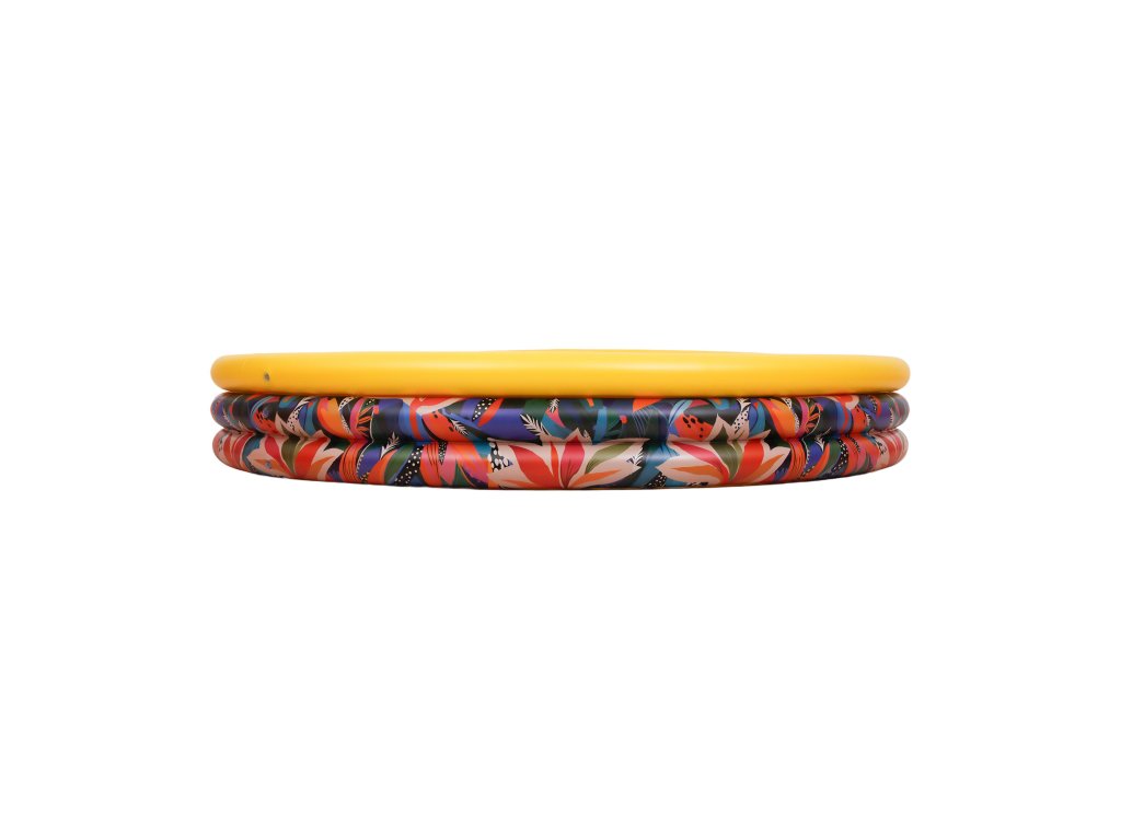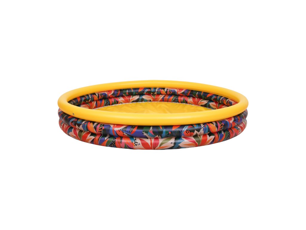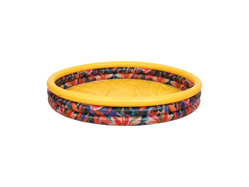 Sončno rumena barva in barviti cvetlični motivi poskrbijo, da bazen takoj pritegne pozornost otrok. Izgleda veselo in poletno, spodbujajoč k igri že pri prvem pogledu. To ni zgolj prostor za čofotanje – to je območje otroškega veselja, kjer nastajajo poletni spomini. Idealno se prilega vsakemu vrtu ali terasi.
