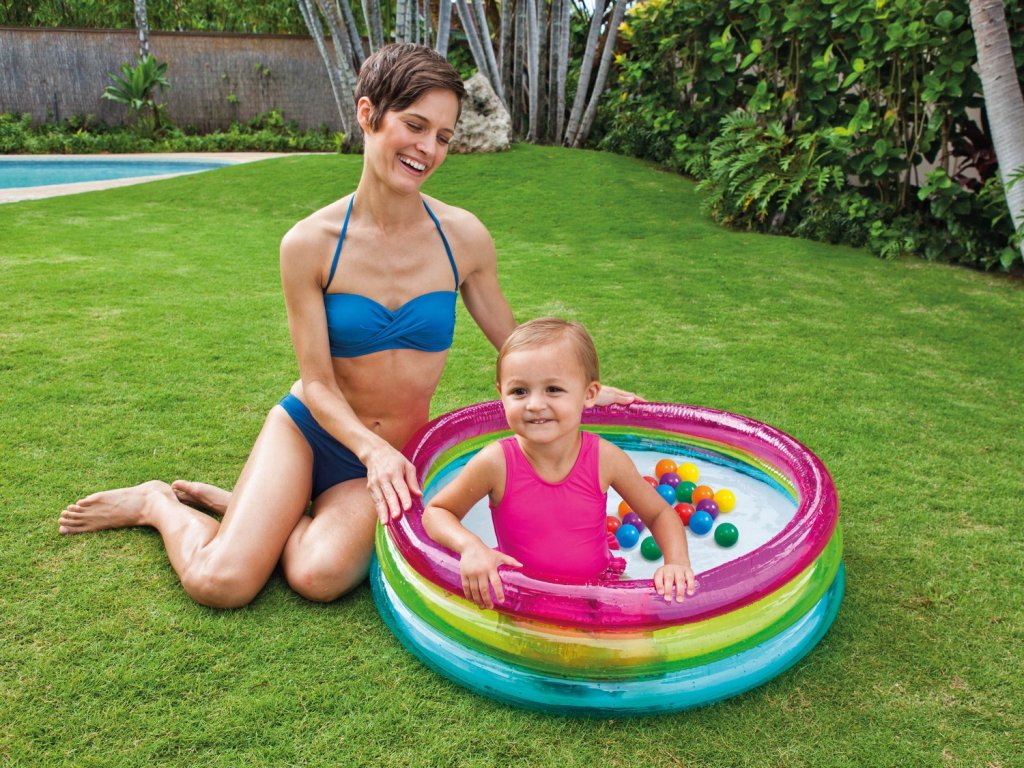 Ograda INTEX je sestavljena iz treh napihljivih stranic, ki zagotavljajo primerno višino in varnost za otroke med igro.