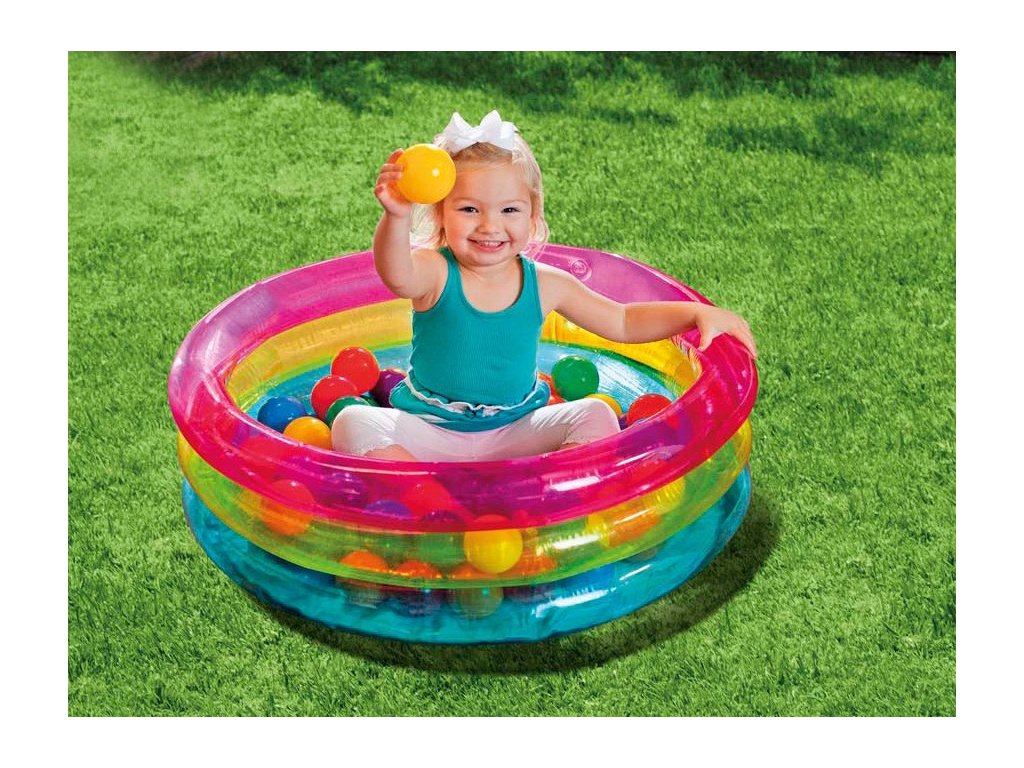 Stranice bazena so v čudoviti roza - rumeno - modri barvni shemi, ki očara vsakega otroka. V kompletu z ograjo boste prejeli 50 žogic s premerom 6,5 cm v barvah: rumena, rdeča, modra, zelena, oranžna in vijolična. Žogice so idealna rešitev za ustvarjanje suhega bazena, ki ga lahko vaš otrok uporablja skozi vse leto