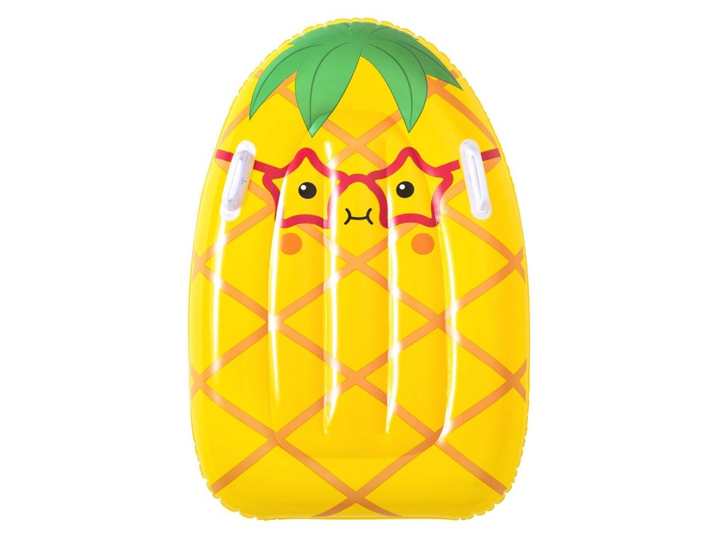 Napihljiva deska za plavanje 84 x 56 cm Bestway 42049 Nepozabna vodna norost! Napihljiva deska za plavanje z dvema priročnima ročajema, ki dodatno izboljšata udobje uporabe v vodi! Izdelana iz močnega PVC materiala Stabilna, trdna konstrukcija iz vzdolžnih zračnih komor Lahka in priročna - lahko se uporablja v bazenu, prav tako pa jo lahko vzamete s seboj na potovanje! V kompletu prejmete popravni obliž, s katerim lahko hitro popravite morebitne nenadne napake! Glavne značilnosti: barvni vzorec po izbiri: Kiwi, Ananas ali Jagoda trpežen material odlična plovnost 2 zračni komori Tehnične specifikacije: Dimenzije: 84 x 56 cm Material: PVC Teža: 0,42 kg Priporočena starost: od 3 do 8 letAdditional parameters