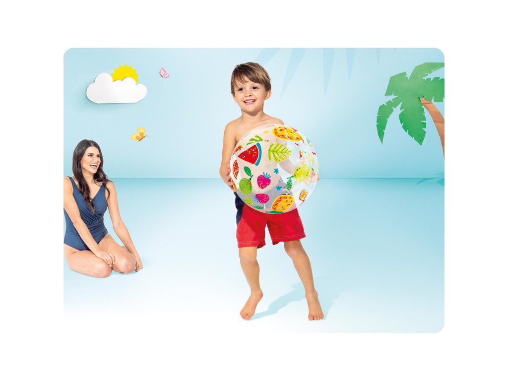 Izpihana zavzema malo prostora v prtljagi, vendar nudi veliko zabave otrokom in odraslim. Barvni vzorec vabi k igri in poskrbi, da je žoga dobro vidna na pesku ali v vodi.