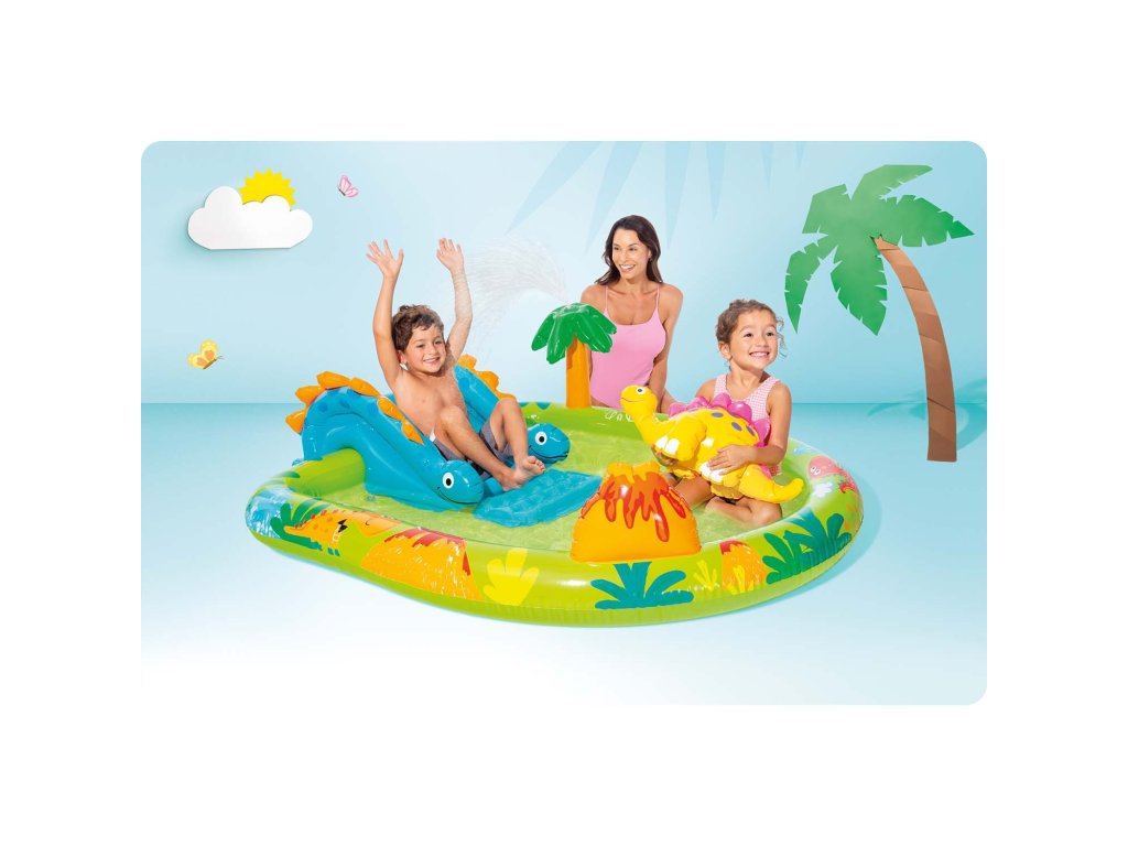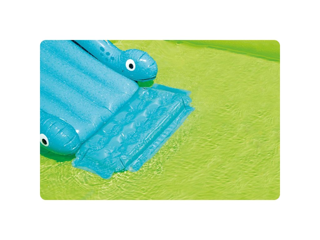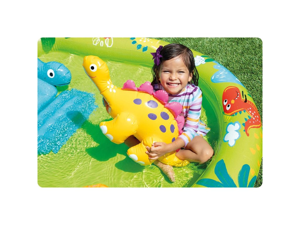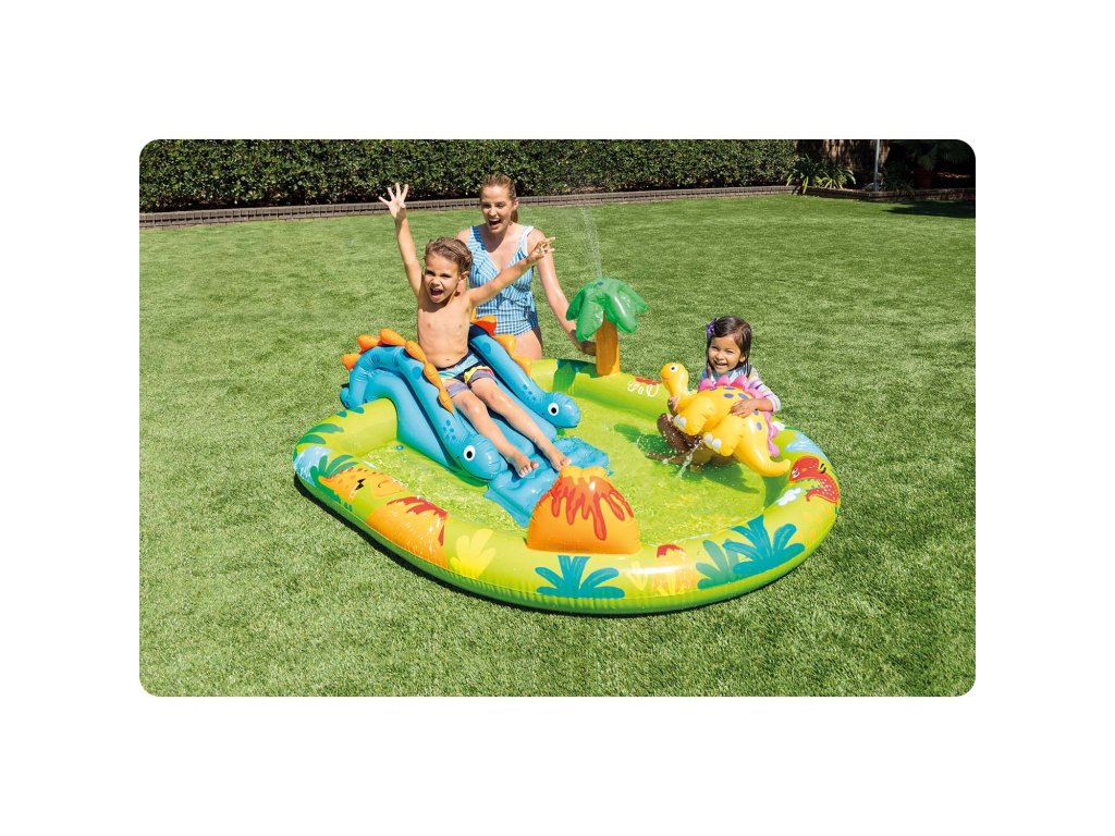 Napihljivo igrišče z dinosavri se izkaže ne le kot vrtni aqua park, ampak tudi v hladnejših dneh kot suh bazen.