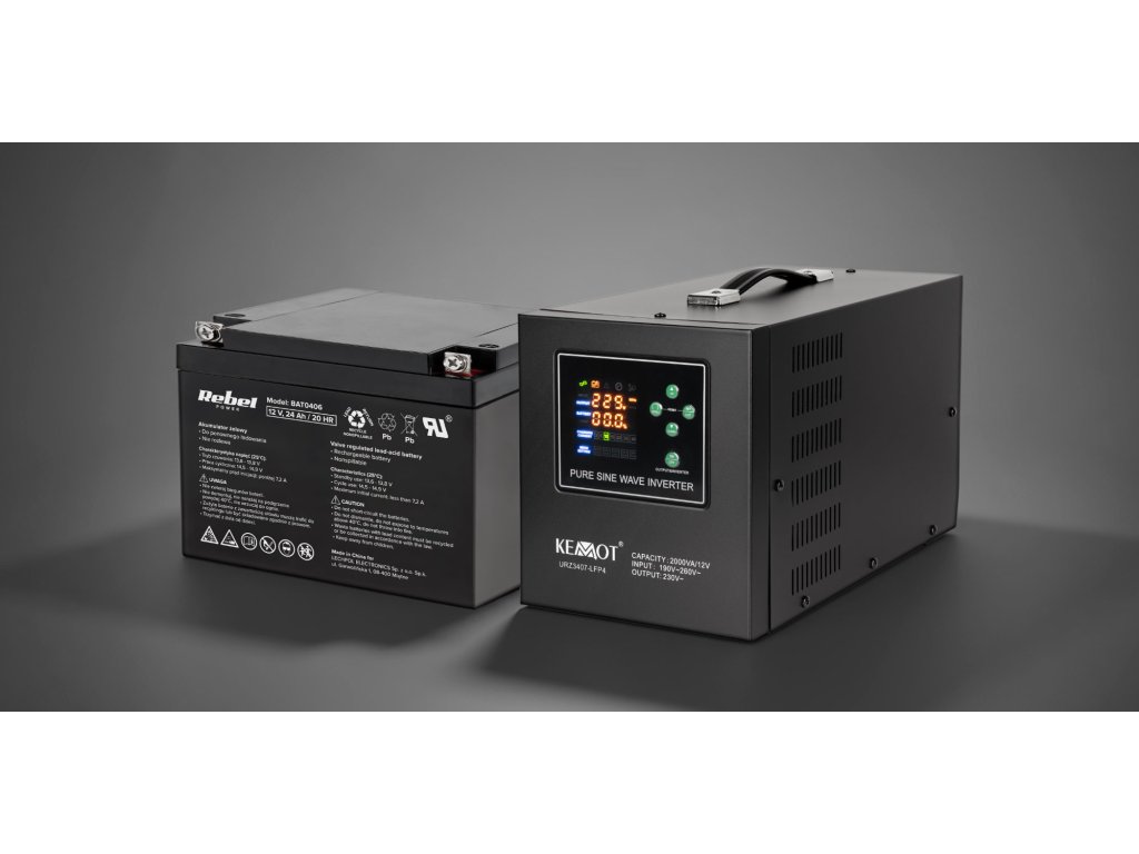 Naprava za rezervno napajanje KEMOT PROsinus-2000 pretvornik s čistim sinusnim valom in funkcijo polnjenja 12V 230V 2000VA/1200W