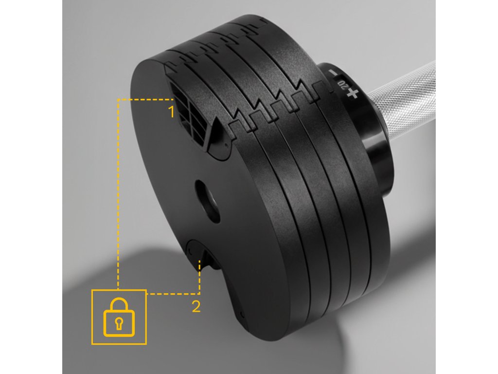Ročka Rebel Active je opremljena z dvojnim mehanizmom zapiranja, ki trdno zaklepa plošče po nastavitvi izbrane obremenitve. Varnostni mehanizem ščiti uporabnika pred nenamernim zdrsom teže, kar bistveno poveča raven varnosti. To je zanesljiv sistem, ki se izkaže med dinamičnimi sestavljenimi treningi in funkcionalnimi vajami.