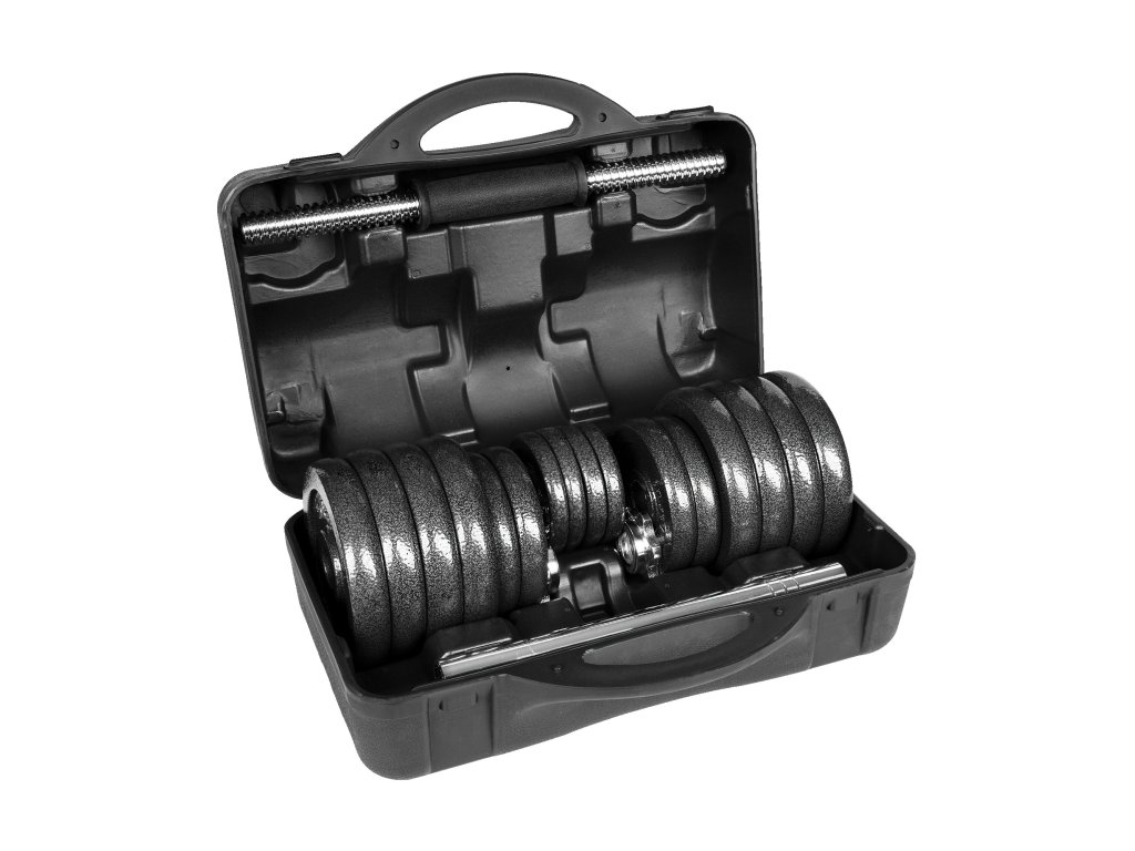 Nastavljive litoželezne uteži v kovčku z ročajem, set 30 kg REBEL ACTIVE