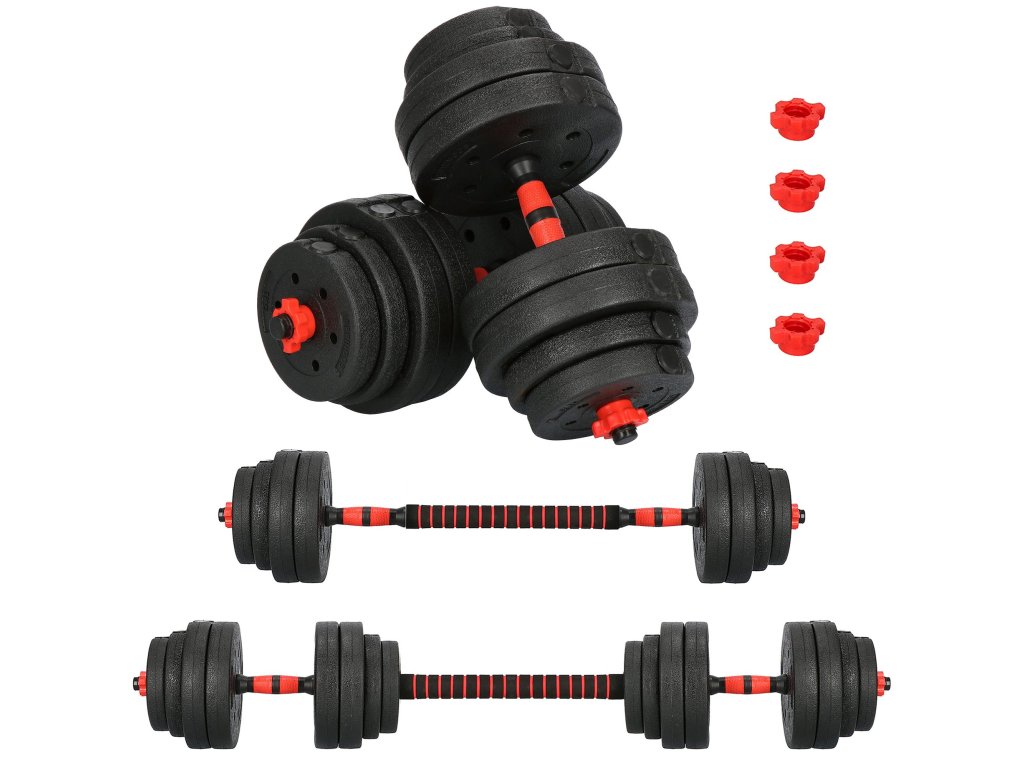 - 2 x kratka palica (skupna dolžina: 47 cm; dolžina uteži: 17 cm; premer uteži: 2,5 cm; dolžina gumiranega dela ročaja: 13 cm; premer uteži: 3,5 cm)
