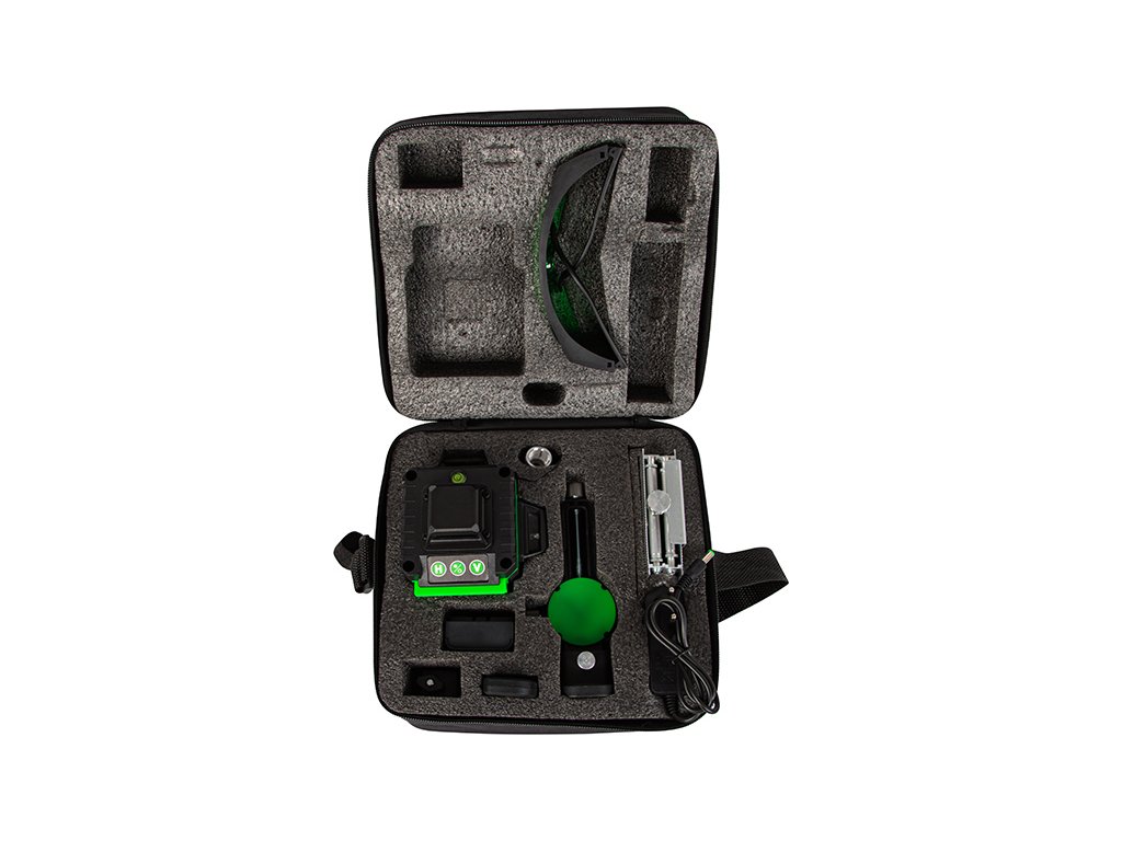 Naprava je opremljena s štirimi močnimi glavami, ki oddajajo 16 laserskih žarkov 360°. To omogoča enostavno montažo npr. ploščic ali drugih elementov na steno.