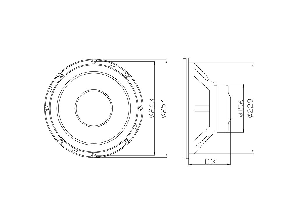 Nizkotonski zvočnik 25 cm 10" 400W 4 Ohm A-250