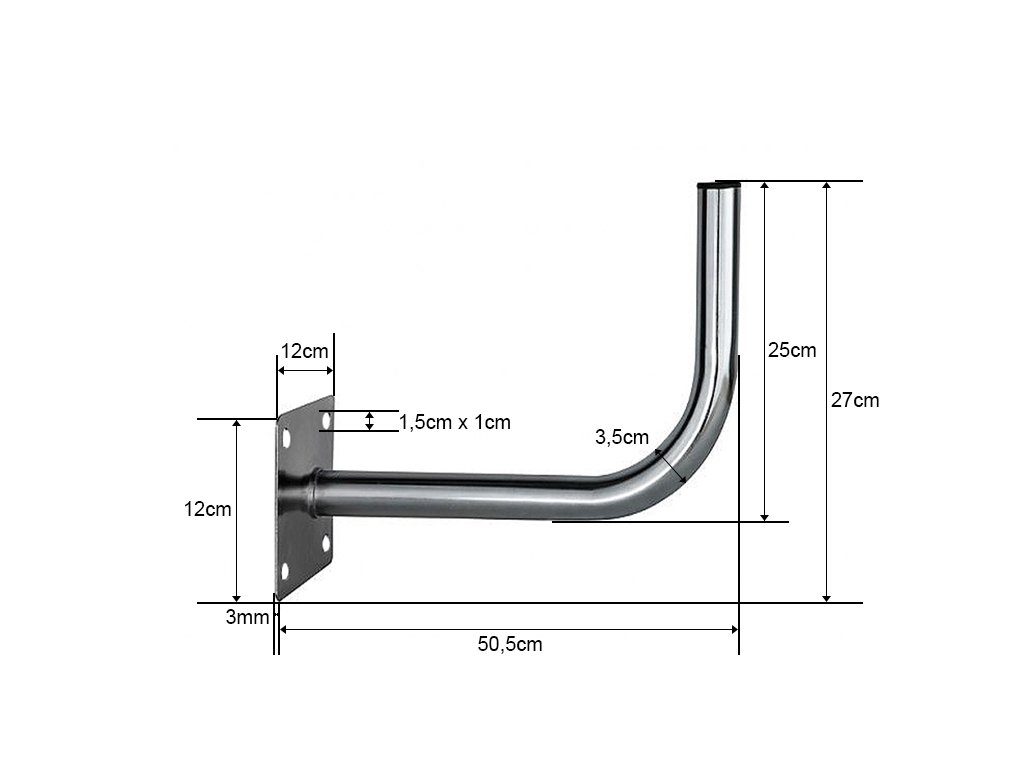 Kotna antena z nosilcem za čelno montažo. Najboljše jeklo zagotavlja, da bo nosilec odporen na zunanje vremenske razmere več let, pokrovček na koncu cevi pa preprečuje vstop vode v notranjost. Maszt, idealen za namestitev katere koli vrste antene: zemeljske, satelitske, radijske in internetne. Maszt za montažo na fasado, zid ali drugo ravno površino.