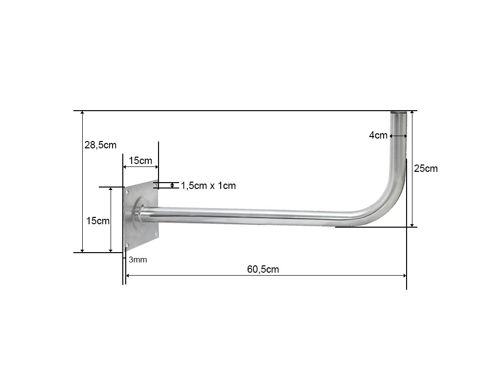 Kotveni antenski drog z čelnim sistemom montaže. Najboljše jeklo zagotavlja, da bo nosilec odporen na zunanje vremenske razmere več let, kapica na koncu cevi pa preprečuje vdor vode v notranjost. Drog je idealen za montažo vseh vrst anten: zemeljske, satelitske, radijske in internetne. Drog za montažo na fasado, zid in druge ravne površine.