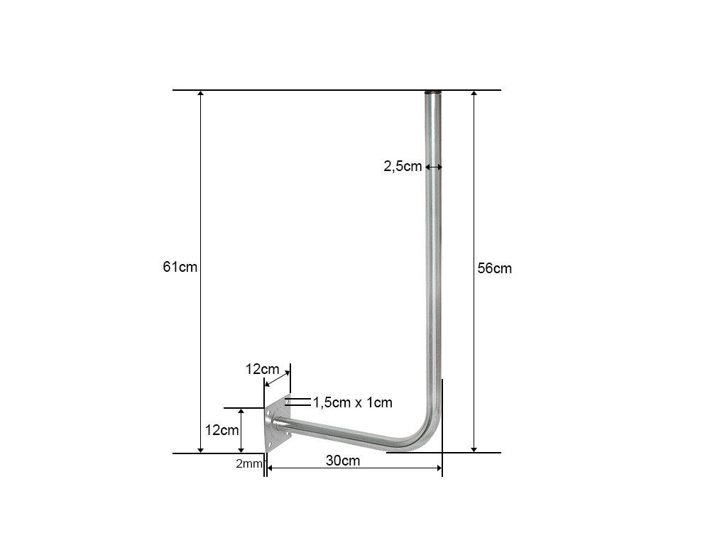Najkakovostnejši čelni nosilec za antene. Najboljše jeklo zagotavlja, da bo nosilec dolga leta odporen na zunanje vremenske razmere, medtem ko kapica na koncu cevi preprečuje vdor vode v notranjost. Drog za montažo na fasado, steno in druge ravne površine.