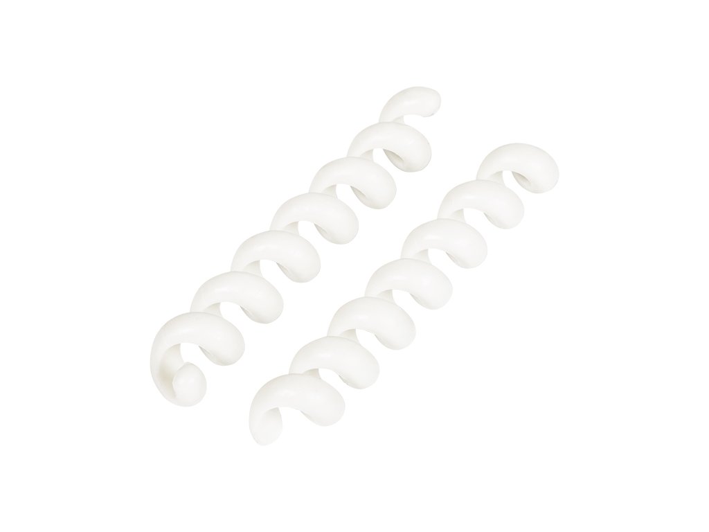 Organizator kablov v obliki elastične vzmeti v beli barvi. Izdelek omogoča enostavno povezovanje in urejanje več žic, kablov in trakov v en paket. Izdelan iz elastične, na poškodbe odporne plastike.